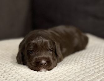 Salem is the sweetest companion and loves to be by your side. She is good natured and produces beautiful chocolate pups, in which some fade to lavender or cafe color. They are STUNNING!