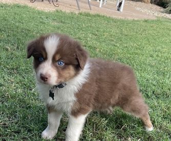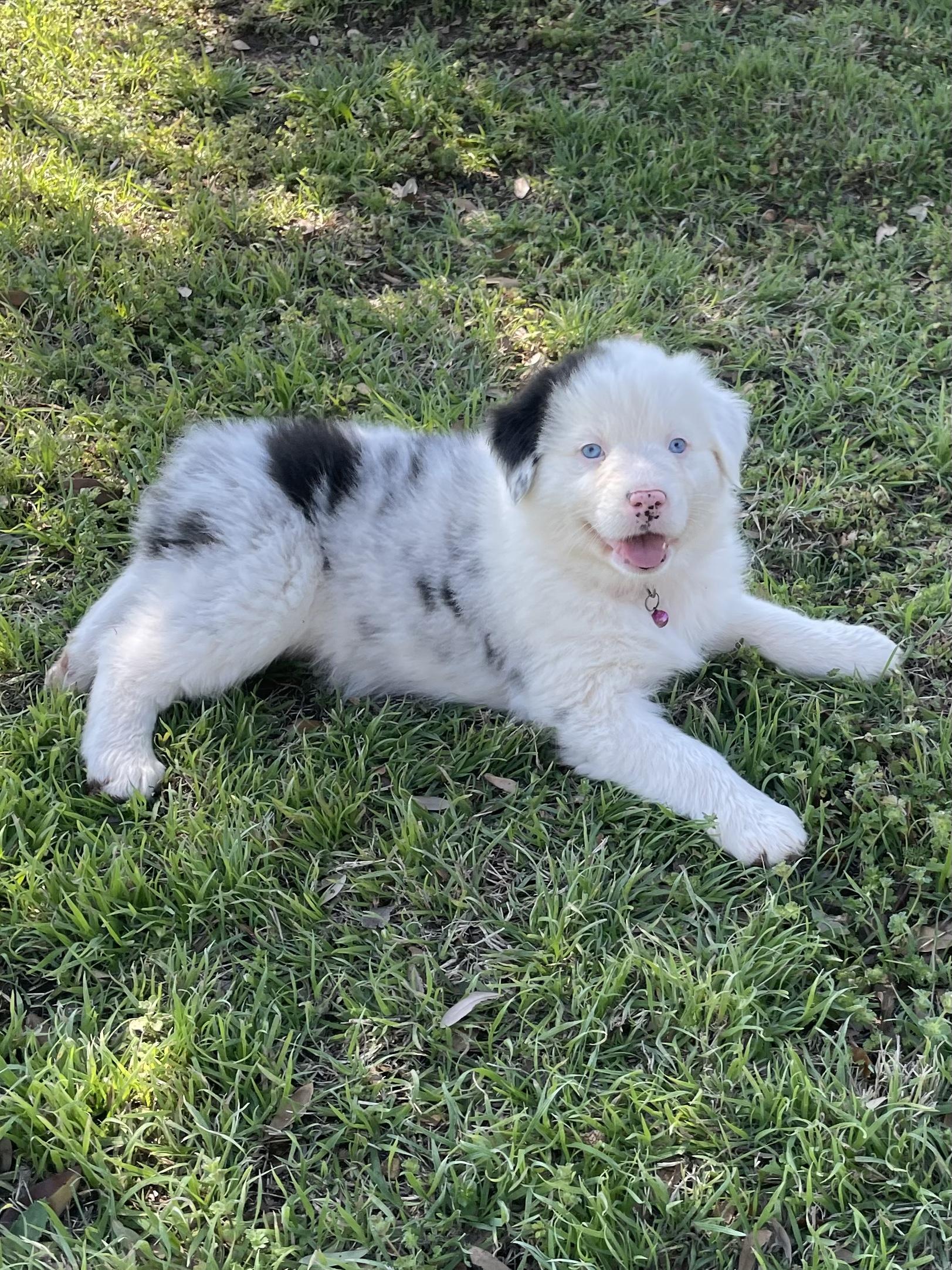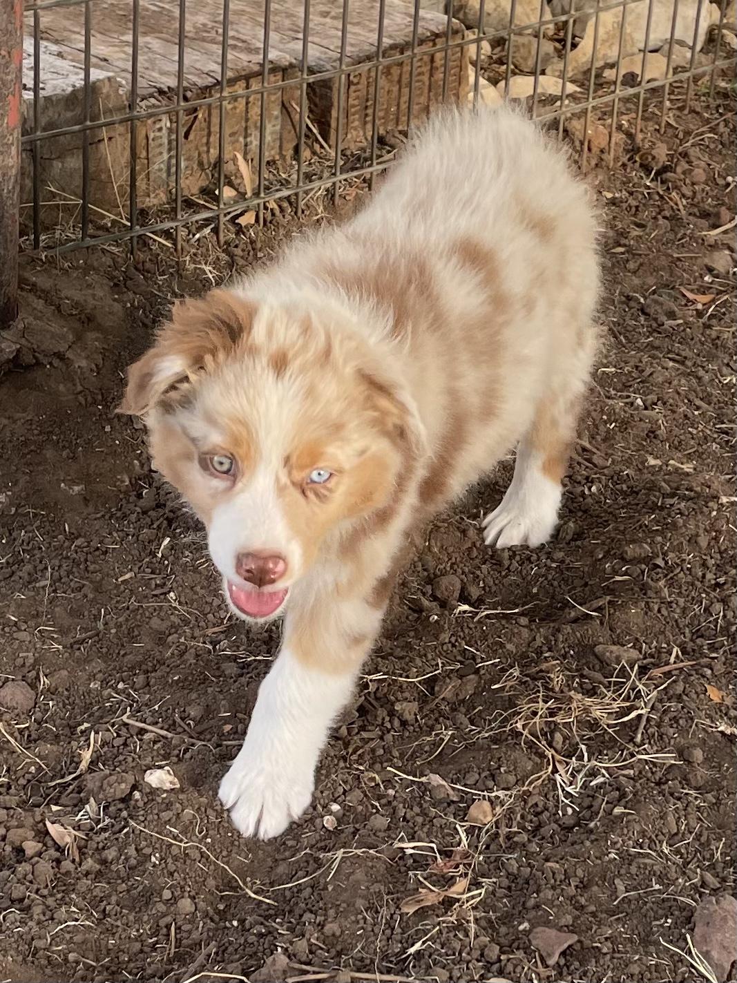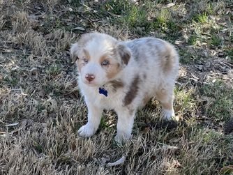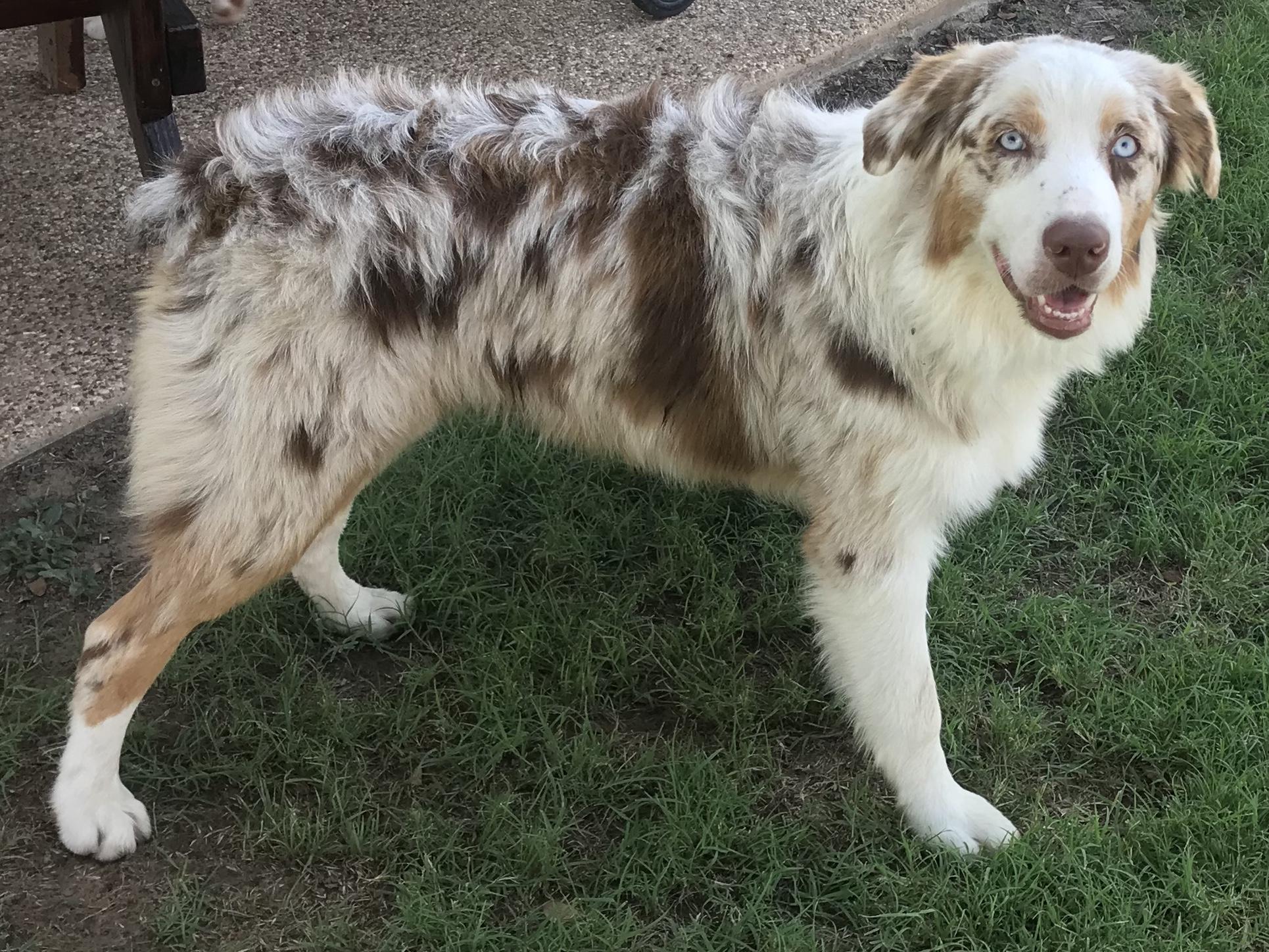 Red merle, blue eyed, ASDR, AKC, and clear panel thru Wisdom Panel.