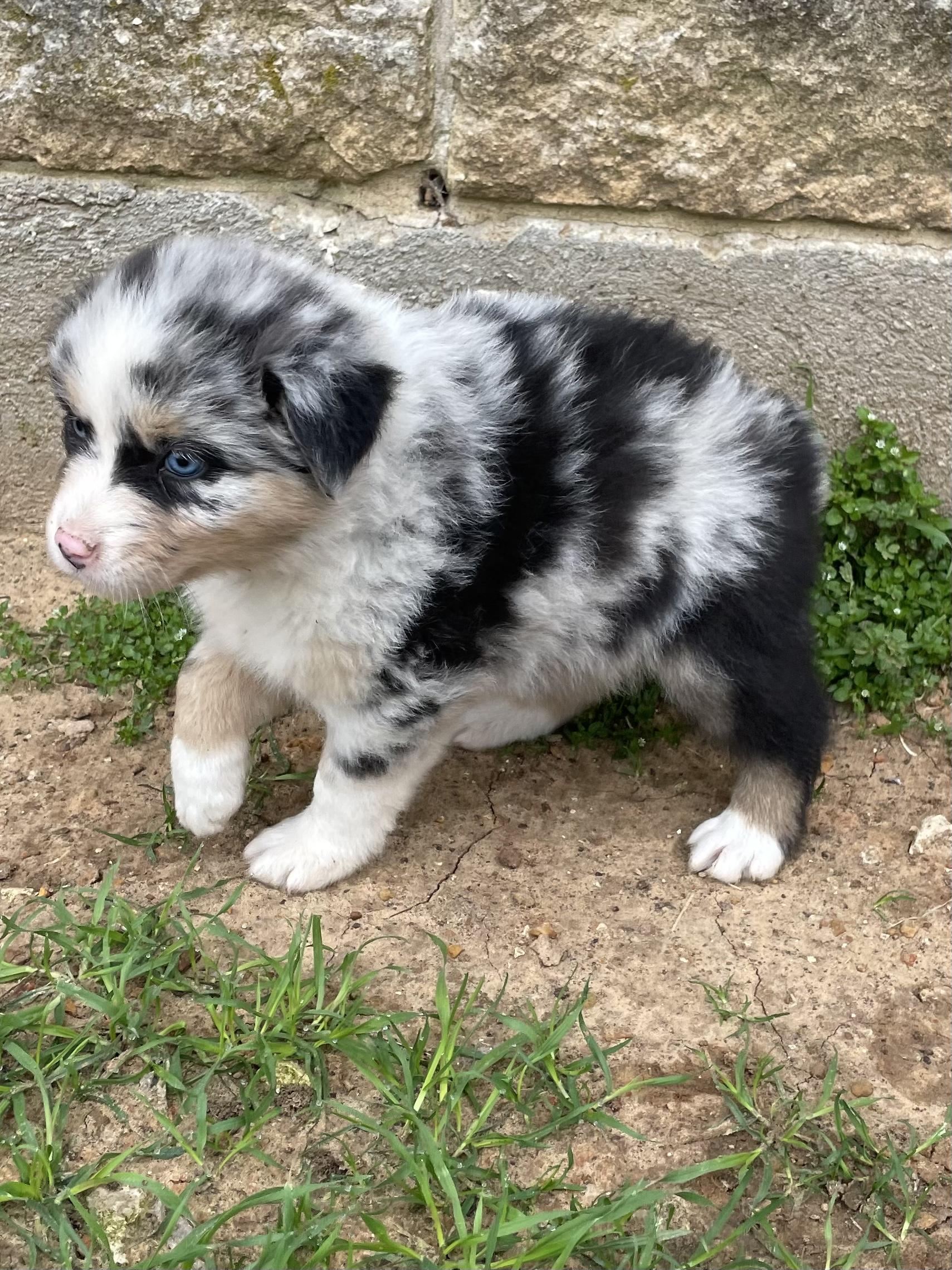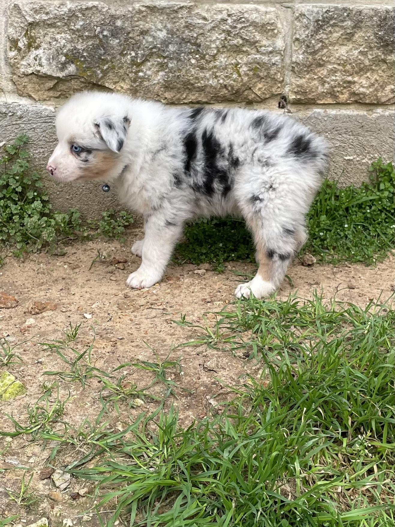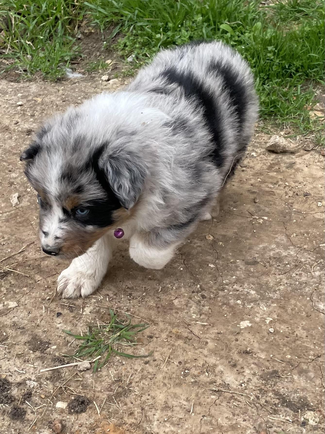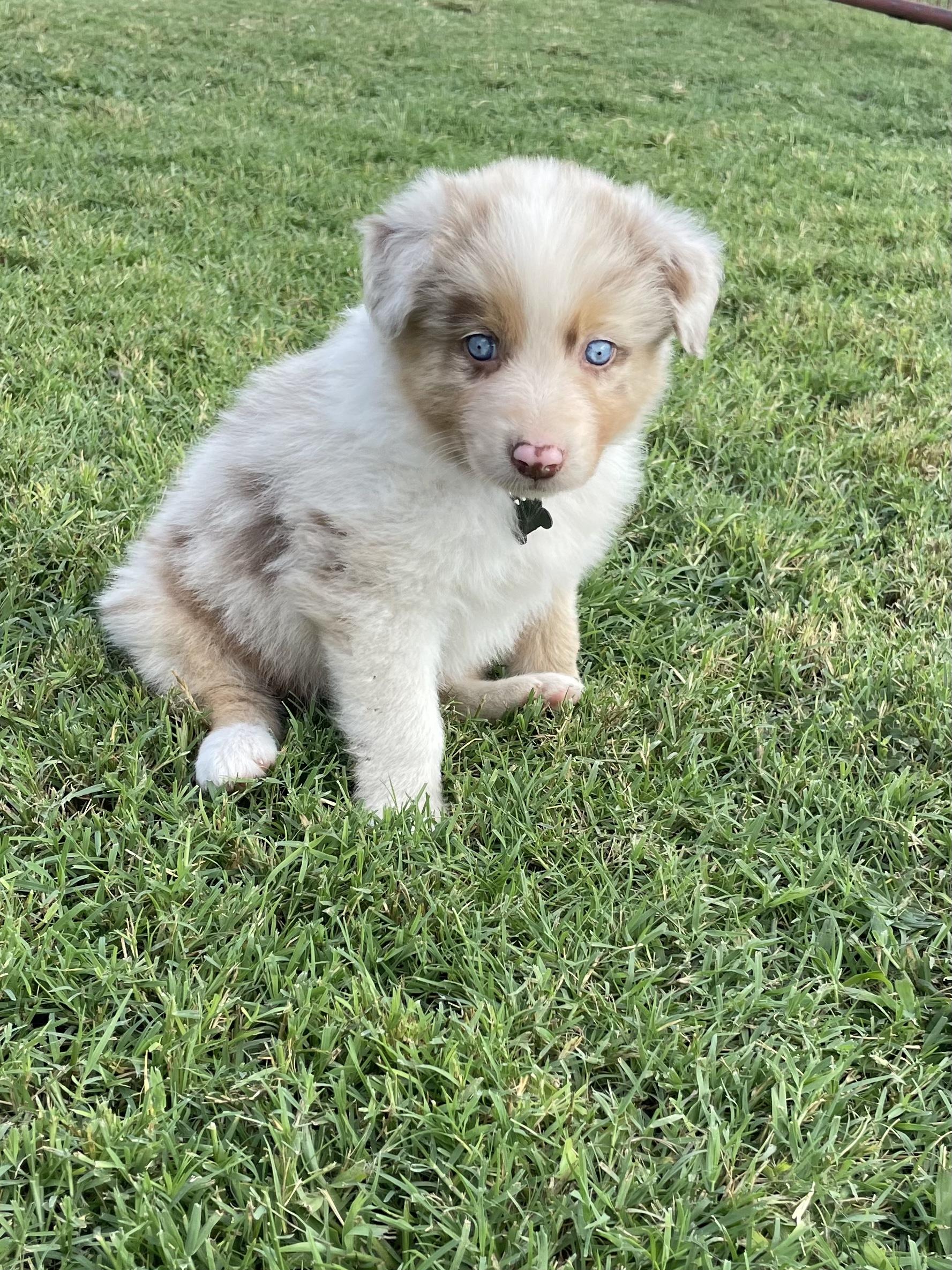 Red merle, blue eyed, ASDR, AKC, and clear panel thru Wisdom Panel.