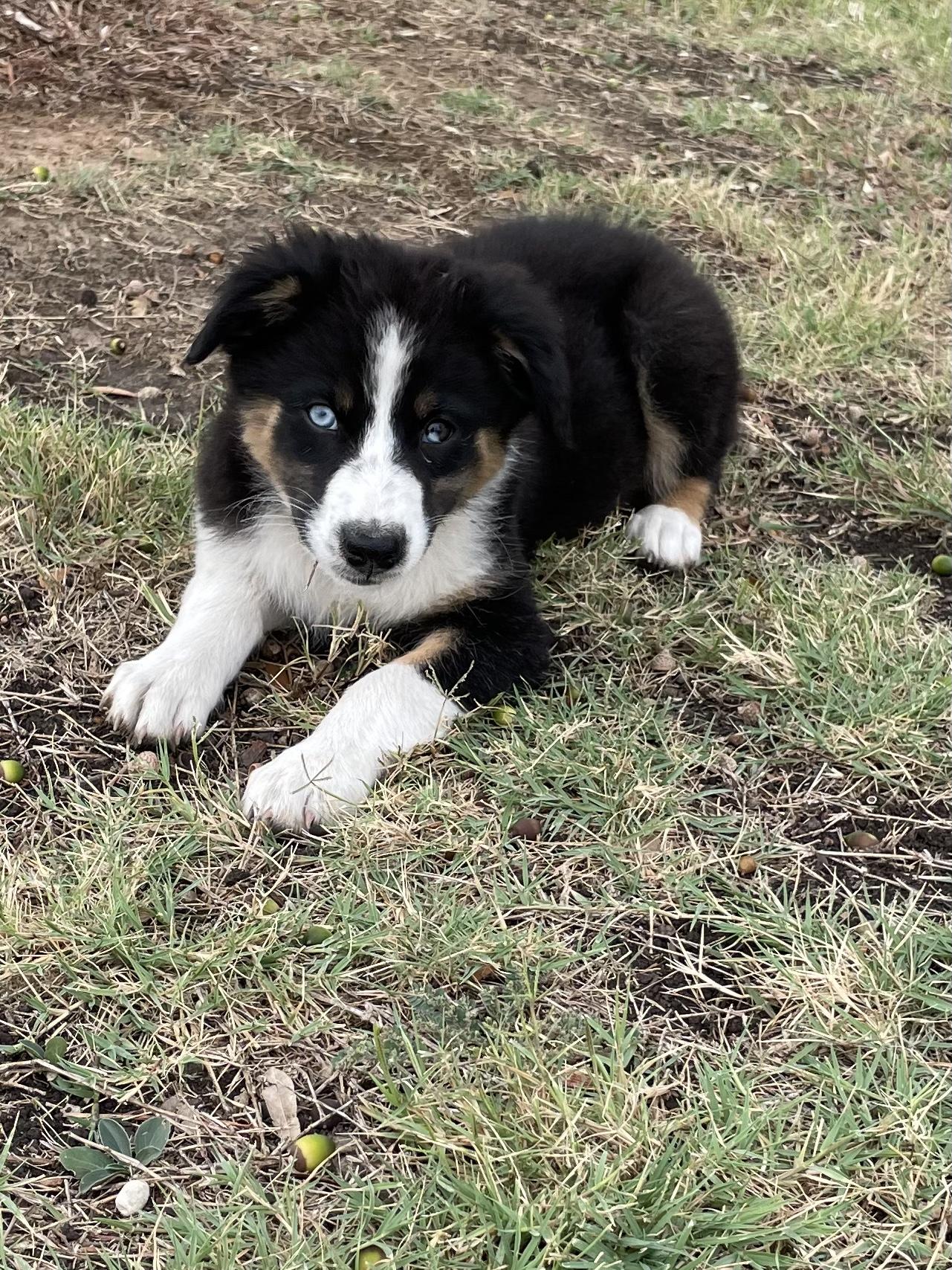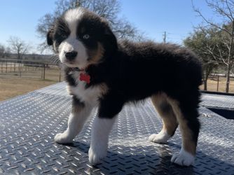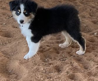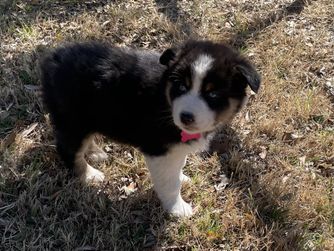 Blue eyed, Black Tri, ASDR, AKC, clear full panel thru Wisdom Panel.