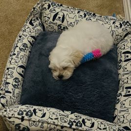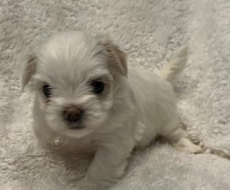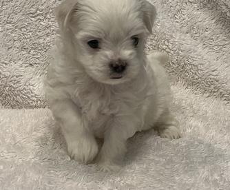 Tate is an AKC Korean Maltese with champion bloodlines. He is also registered through CKC & APRI. The Korean bloodlines give him his "babydoll face". He is very playful and sweet.