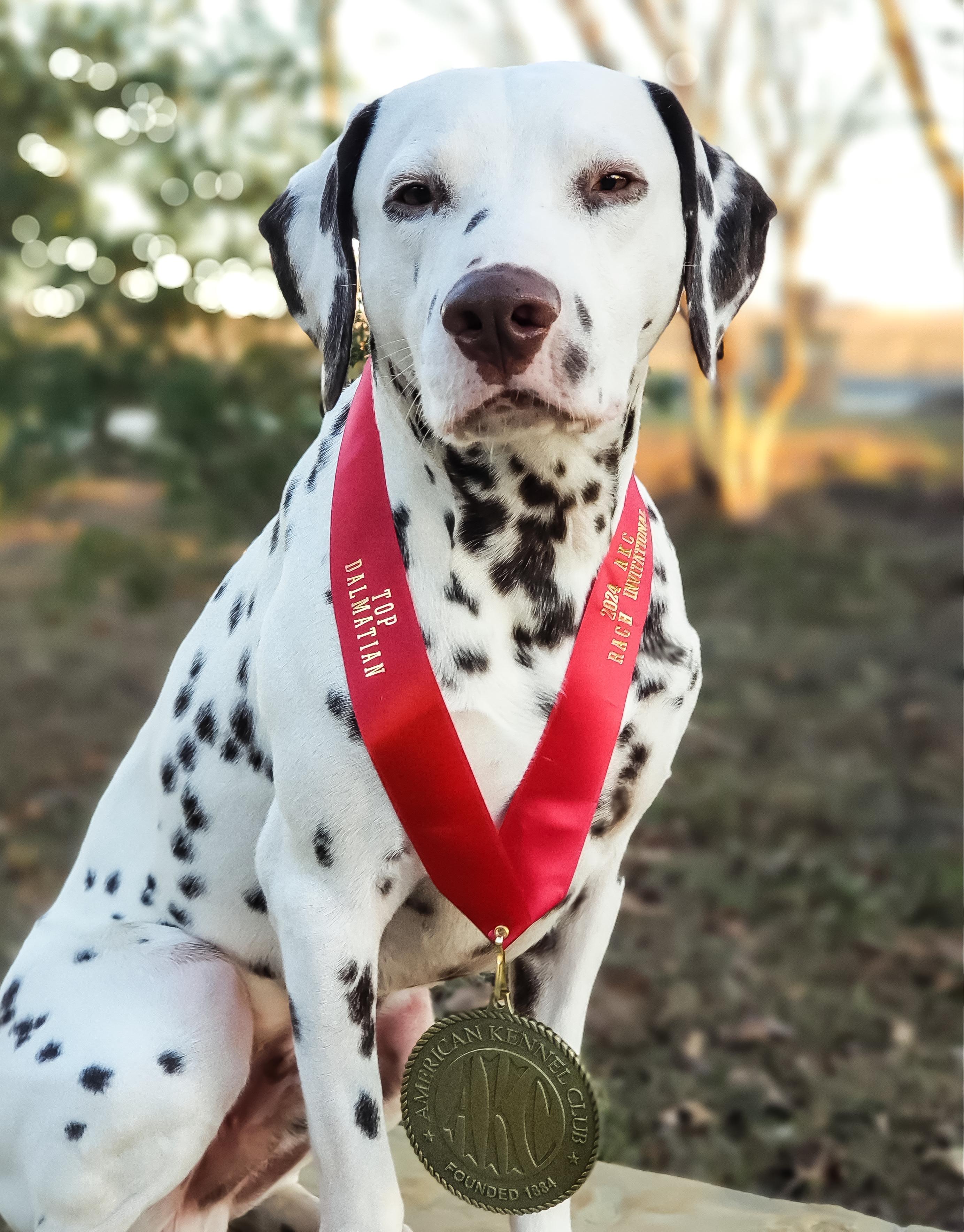 I'm Shannon K., the breeder behind 5 Alarm LUA Dalmatians & Bling Tiny Doodles located in Mckinney, TX. Our puppies are bred by a professional dog trainer and raised with care in our 4 acre TX home. We breed with a focus on health and temperament, and we spend lots of time with early socialization and training to give our pups a great foundation for good behavior as pets and sport dog prospects. Our current dalmatian stud Triple is the AKC Top Dalmatian in Rally Obedience for 2024!!