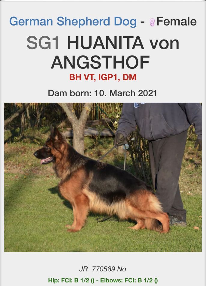“Parents all have either OFA or SV hips/elbows passing, are DM clear and fantastic pedigrees. All puppies will come with 5&8 week shots, dewormed and have AKC registration papers after they see the vet at 8 weeks old. Deposit to hold a puppy is 50% nonrefundable.”