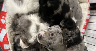 Our puppies include piebald, black, chocolate, chocolate and tan, and dapple. Colors will vary depending on the parent dogs.