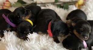 Our puppies are black and mahogany. Colors will vary depending on the parent dogs.