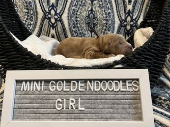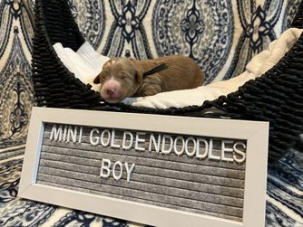 Our Goldendoodle puppies include cream, apricot, red, and parti. Poodle puppies include red, parti, and phantom. Colors will vary depending on the parent dogs.