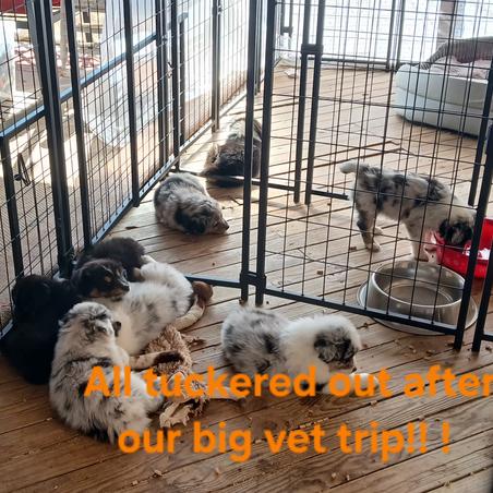 Our puppies include blue merle, black tri-color, and red tri-color. Colors will vary depending on the parent dogs.