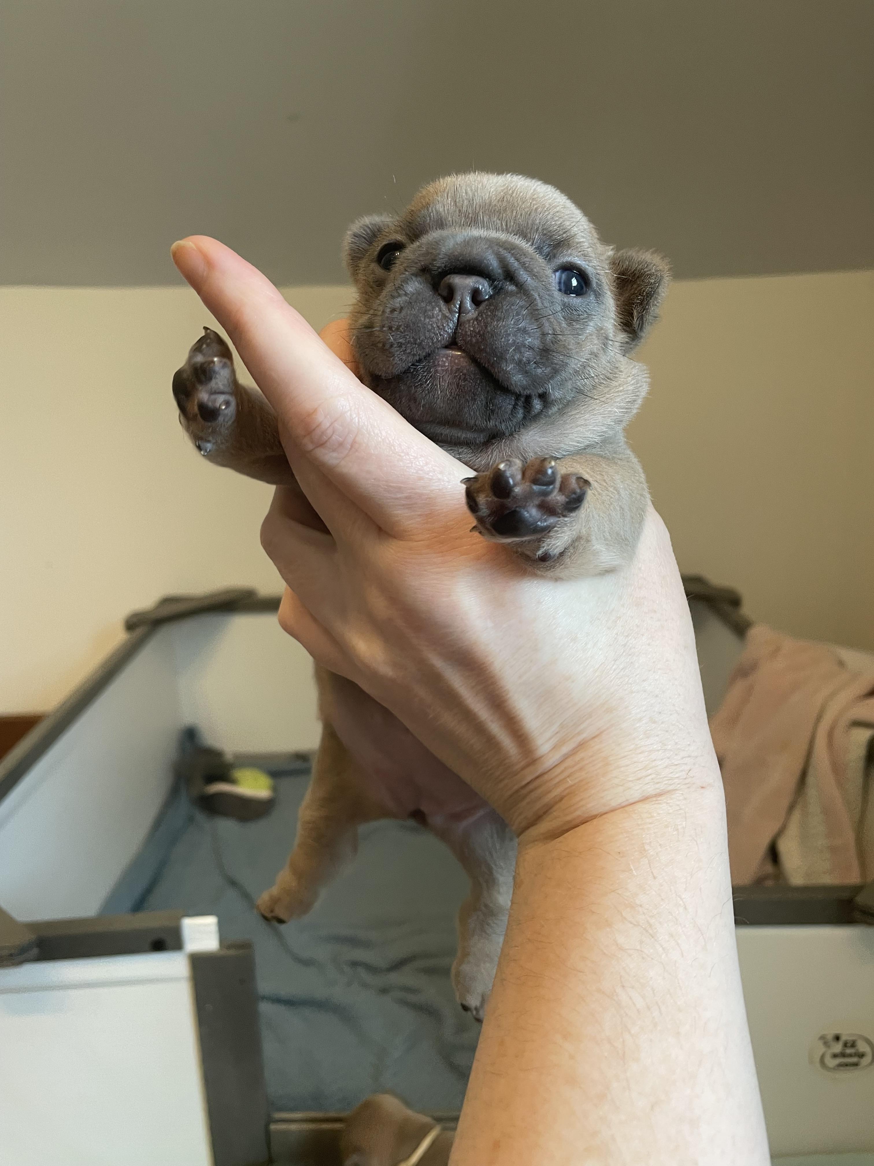 Hilde is a female French Bulldog. Carefully selected as a great representative of her breed, Andrea decided to make her part of their program. Andrea has passed Good Dog’s screening process, which involved a review of their breeding practices, environment, and the mental and physical health of their dogs.