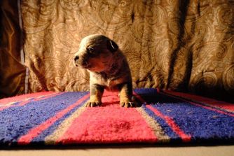 Our puppies include blue mottled, blue speckled, red mottled, red speckled, and blue. Colors will vary depending on the parent dogs.