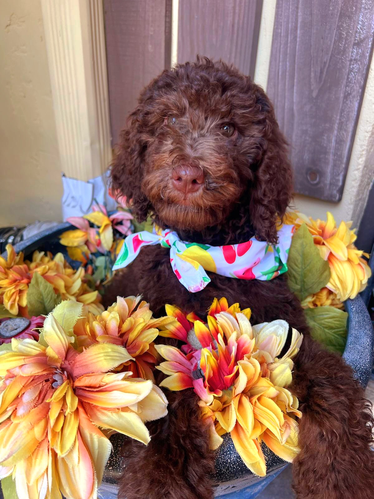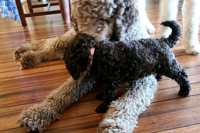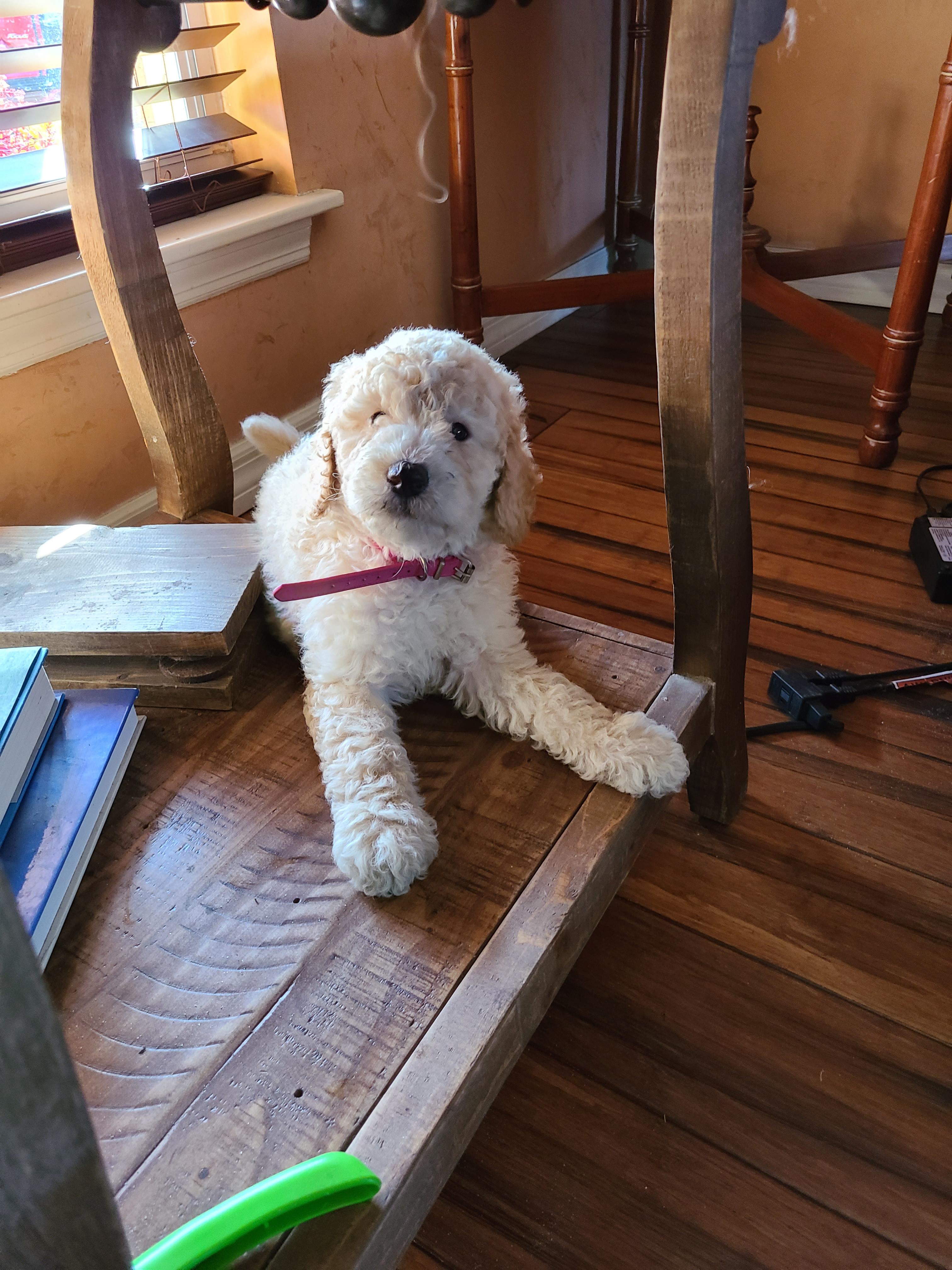 Sweet Tater is a female Labradoodle. Carefully selected as a great representative of her breed, Chris decided to make her part of their program. Chris has passed Good Dog’s screening process, which involved a review of their breeding practices, environment, and the mental and physical health of their dogs.