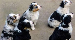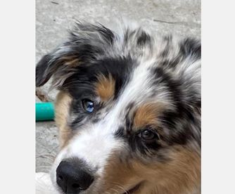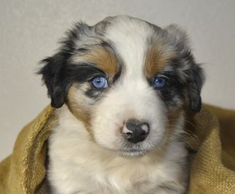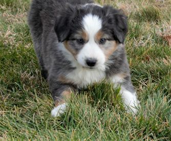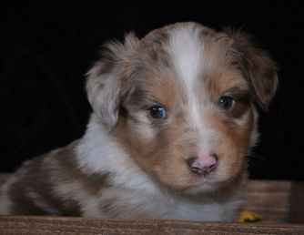 Our Miniature Australian Shepherd puppies are blue merle. Miniature American Shepherd puppies include black, red merle, and blue merle. Colors will vary depending on the parent dogs.