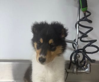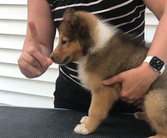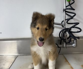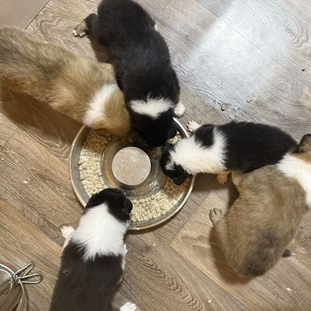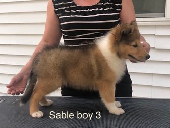 Our puppies include sable and white and black white and tan. Colors will vary depending on the parent dogs.