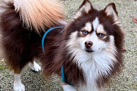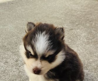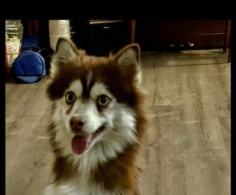 This handsome stud muffin weighs 12 pounds and has a fun and loving personality. He is definitely my side kick, he is alway by my side. Gizmo’s puppies have almost always come out looking like him. If your dreaming of a beautiful pocket size chocolate husky (Pomsky Puppy ) take a look at his sired litters. You won’t be disappointed.