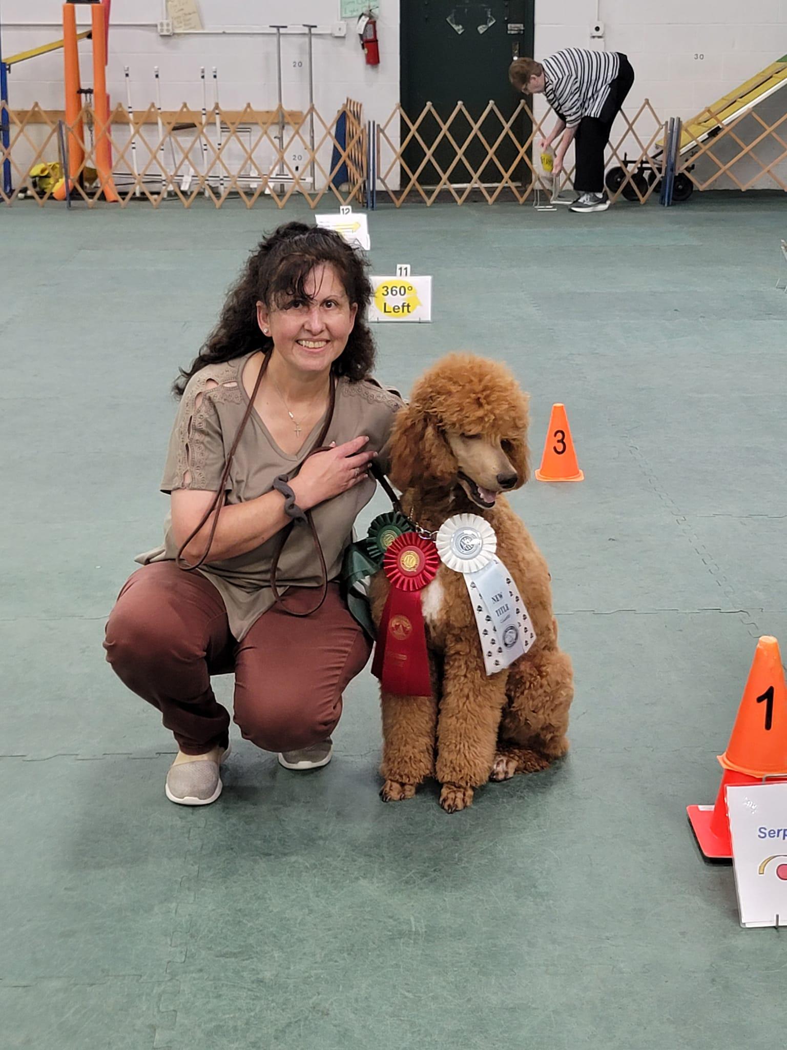 I'm Tina S., the breeder behind A & A Pinedale Standard Poodles located in Nottingham, MD. Our motivation in breeding is to create the best possible puppy in structure, health, temperament, and beauty. Our dogs are fully OFA/PenHip/Embark health tested and heavily AKC/CPE titled in performance sports. Our puppies are excellent performance (obedience/rally/agility/trick dog/Fast CAT) prospects as well as companion pets!