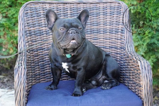BOMBA is a male French Bulldog. Carefully selected as a great representative of his breed, Galina & Nick decided to make him part of their program. Galina & Nick has passed Good Dog’s screening process, which involved a review of their breeding practices, environment, and the mental and physical health of their dogs.