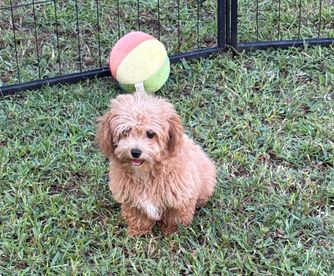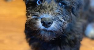 Our Coton de Tulear puppies are white. Schnoodle puppies include white, apricot, brown, and black. Miniature Schnauzer puppies include parti, liver, salt and pepper, black, and black and silver. Poodle puppies include apricot, black, cream, red, and silver. Assorted Doodle Crosses puppies include black phantom, black, apricot, and black and white. Colors will vary depending on the parent dogs.