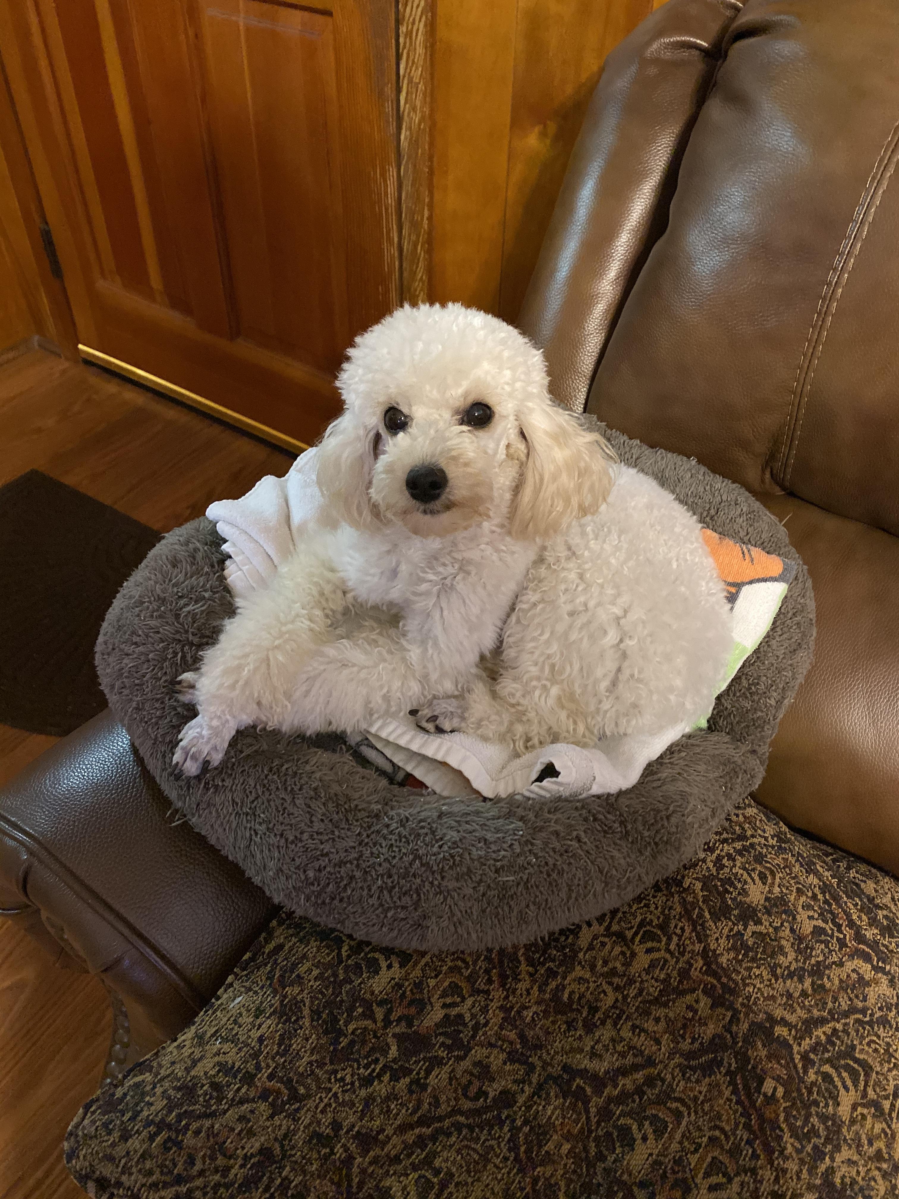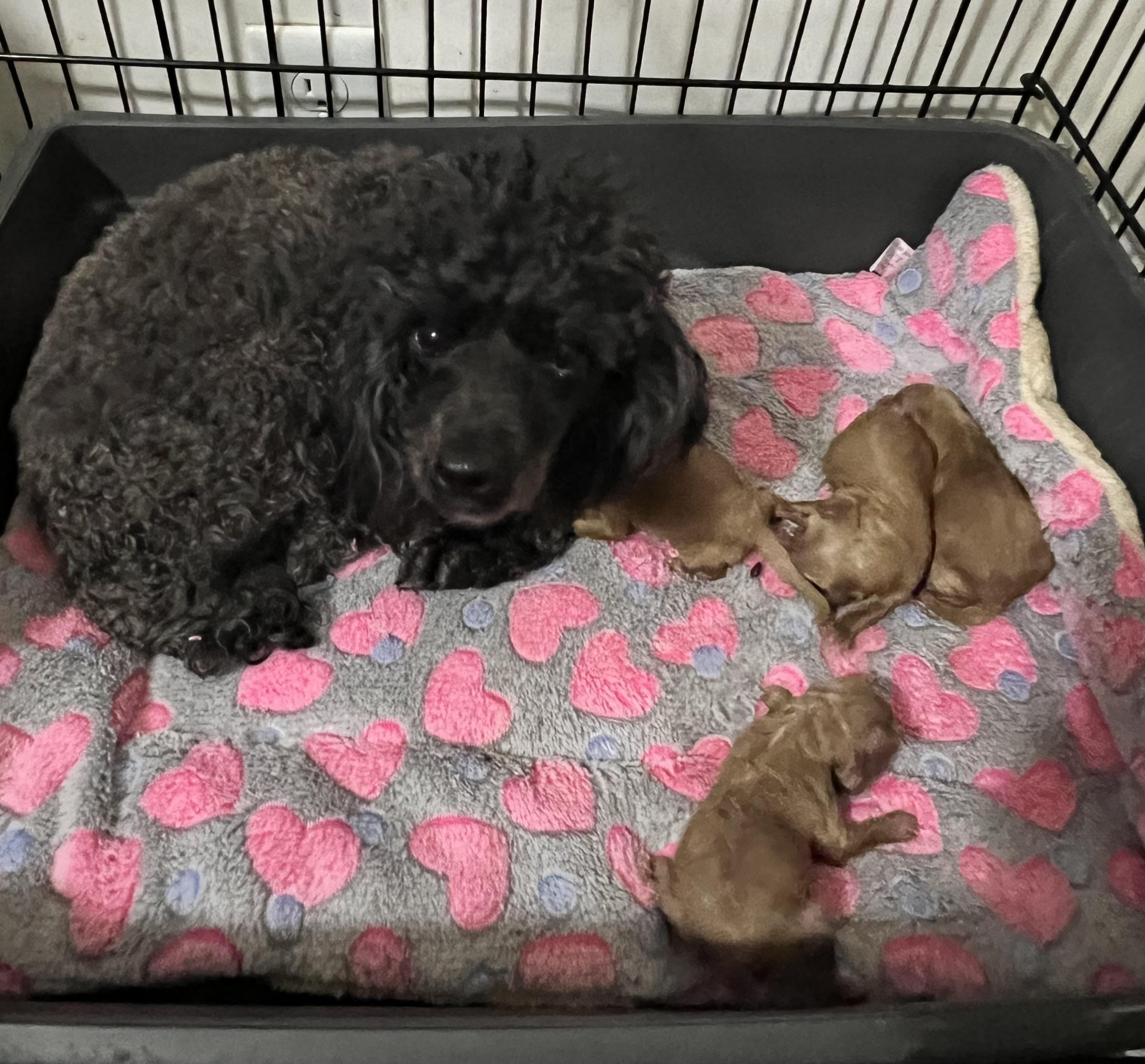 Rhett is a male Poodle. Carefully selected as a great representative of his breed, Denise decided to make him part of their program. Denise has passed Good Dog’s screening process, which involved a review of their breeding practices, environment, and the mental and physical health of their dogs.