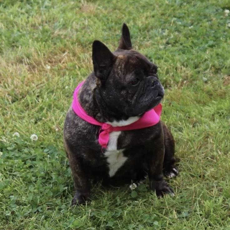 Pickles is a female French Bulldog. Carefully selected as a great representative of her breed, Dana decided to make her part of their program. Dana has passed Good Dog’s screening process, which involved a review of their breeding practices, environment, and the mental and physical health of their dogs.
