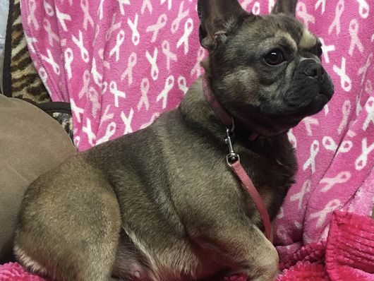 Sadie is a female French Bulldog. Carefully selected as a great representative of her breed, Dana decided to make her part of their program. Dana has passed Good Dog’s screening process, which involved a review of their breeding practices, environment, and the mental and physical health of their dogs.