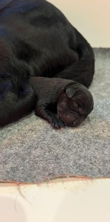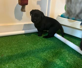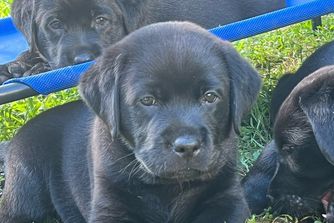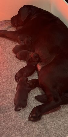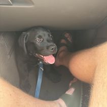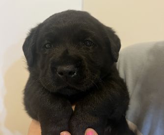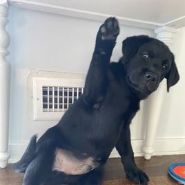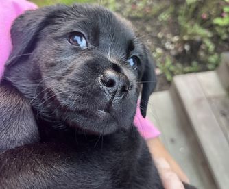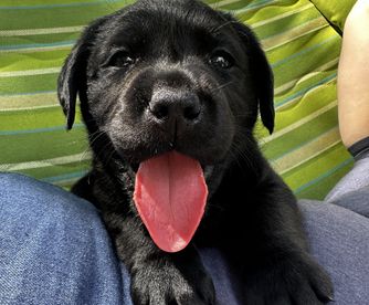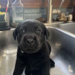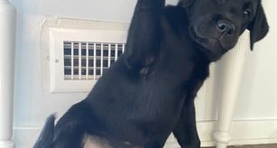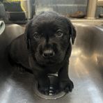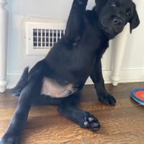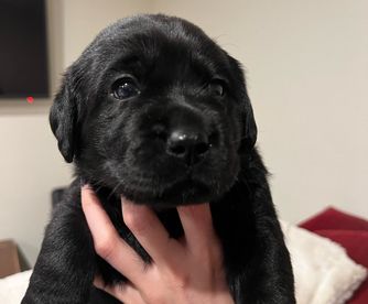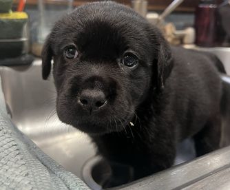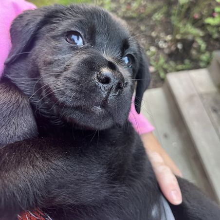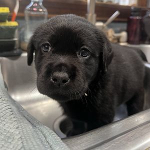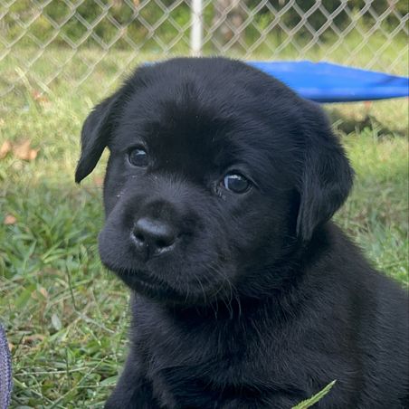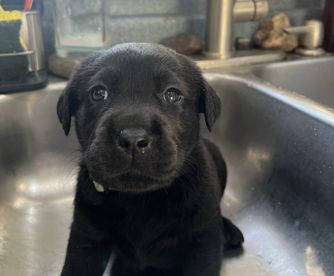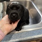 Luna is a champion-sired, English-style Labrador retriever. Her dam was also champion-sired. She is a playful, gentle, and oh-so-sweet. She loves to swim, fetch, and eat! She is loves people, dogs, and cats.