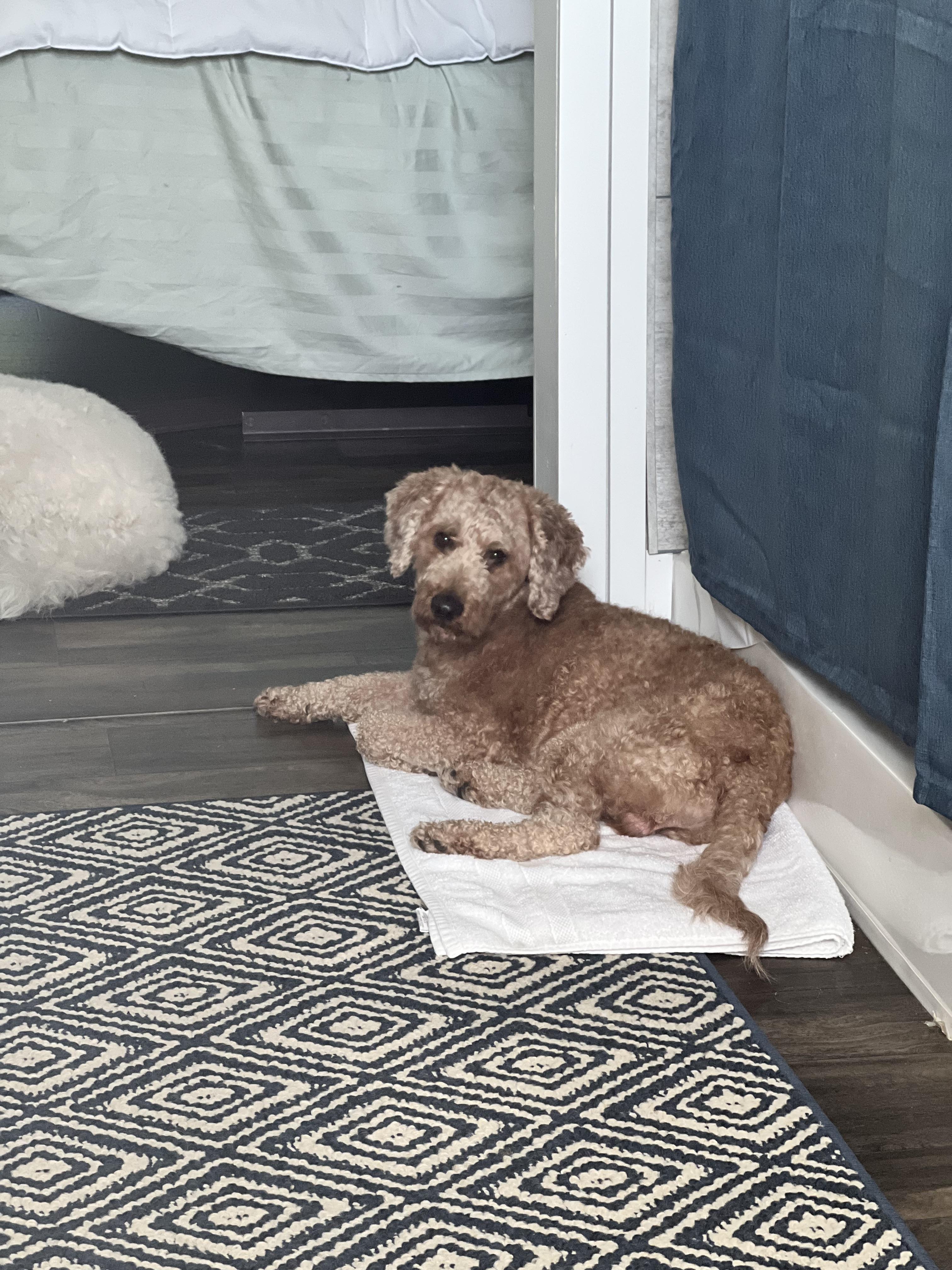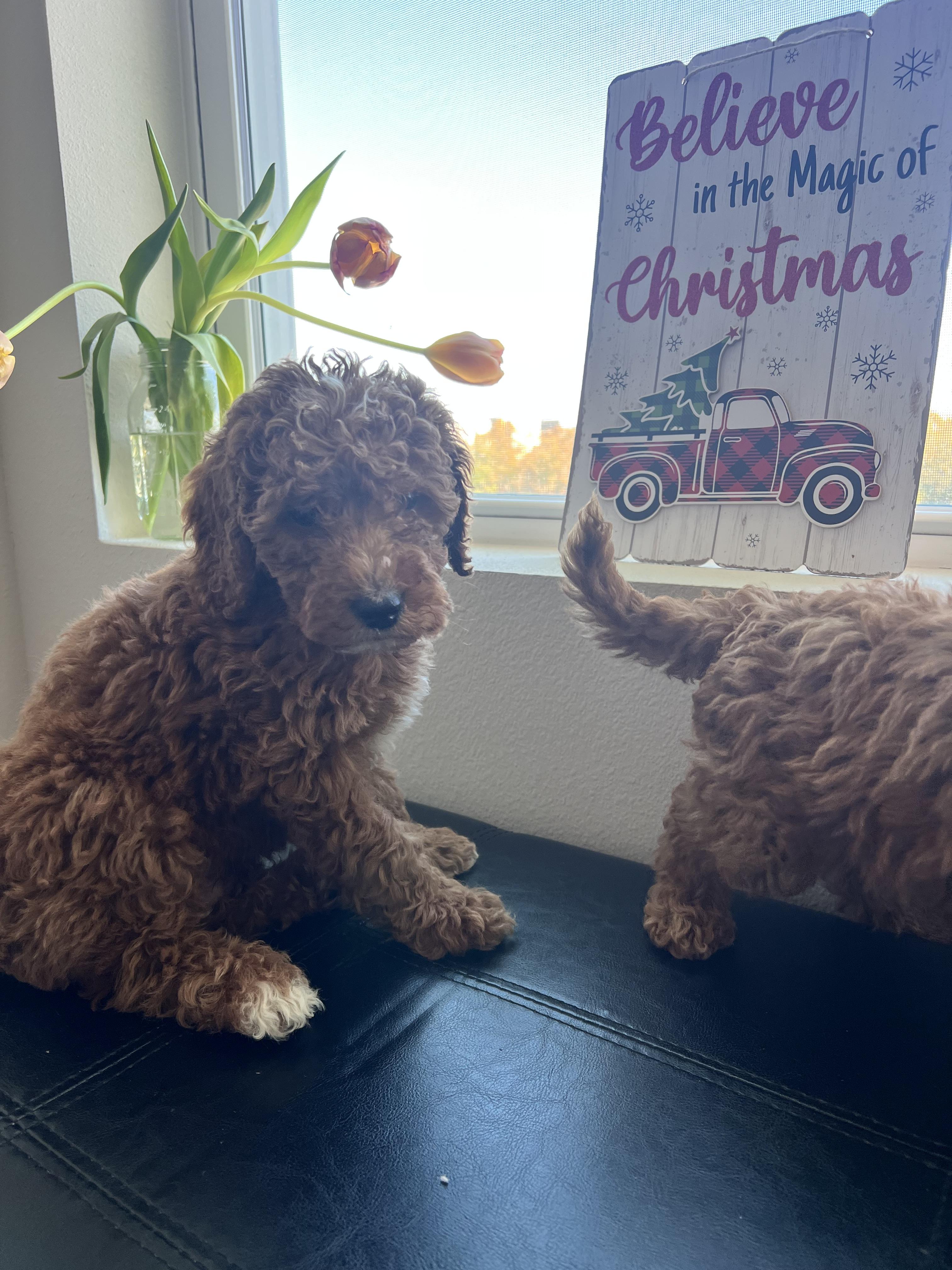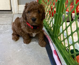 Merlin is a male Labradoodle. Carefully selected as a great representative of his breed, Evelyn decided to make him part of their program. Evelyn has passed Good Dog’s screening process, which involved a review of their breeding practices, environment, and the mental and physical health of their dogs.