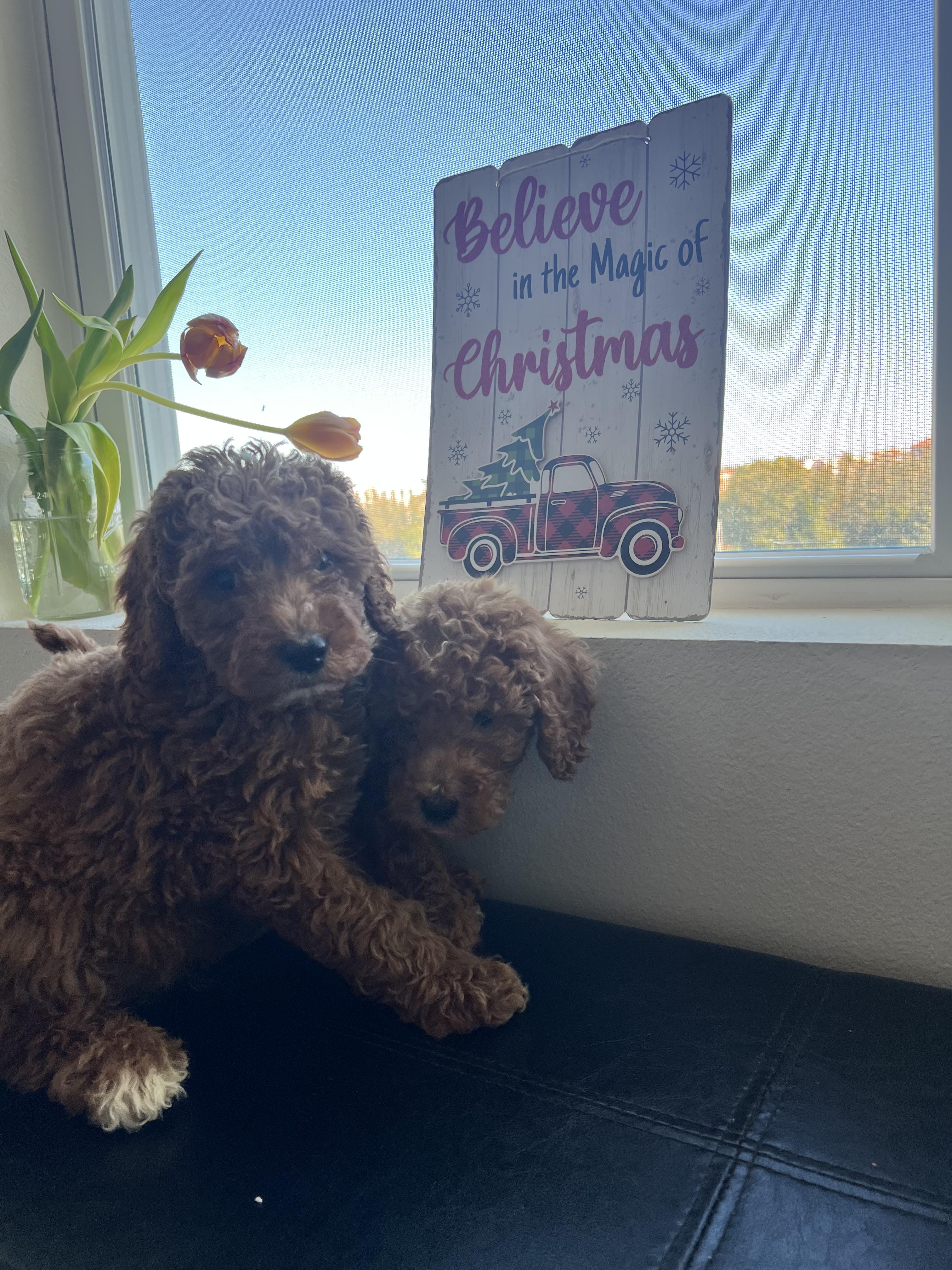 Our puppies include miniature and medium sizes. Sizes will vary depending on the parent dogs.