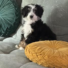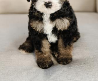 If you are seeking a smart, loyal, lovable, floppy, goofball of a pup, you've come to the right place! I have nothing but wonderful things to say about A and E Farms! After a lot of researching and searching for the right breeders we chose to purchase a standard sized Bernedoodle to be my service dog. The A and E Farms puppies stood above all the rest that we had looked at. Elli was absolutely wonderful to work with. Even though they temperament test their puppies, she was totally cool with letting us bring another dog trainer that specializes in service dogs to come in and temperament test a couple of the puppies. We chose our beautiful boy, Eros. I have worked with multiple dogs before, but I was instantly amazed at how smart and quick to catch on Eros was. He is well socialized, kennel trained and we have had only a few potty accidents in the month since we brought him home. Elli has always answered any questions I've had regarding the Bernedoodle breed, nutrition, grooming, etc. She is so sweet and well versed in all things Bernedoodle. It is so evident to everyone that meets Eros and has heard about our experience that A and E Farms genuinely cares about every single puppy they raise. They pour their heart and soul into every pup and care about what becomes of them.