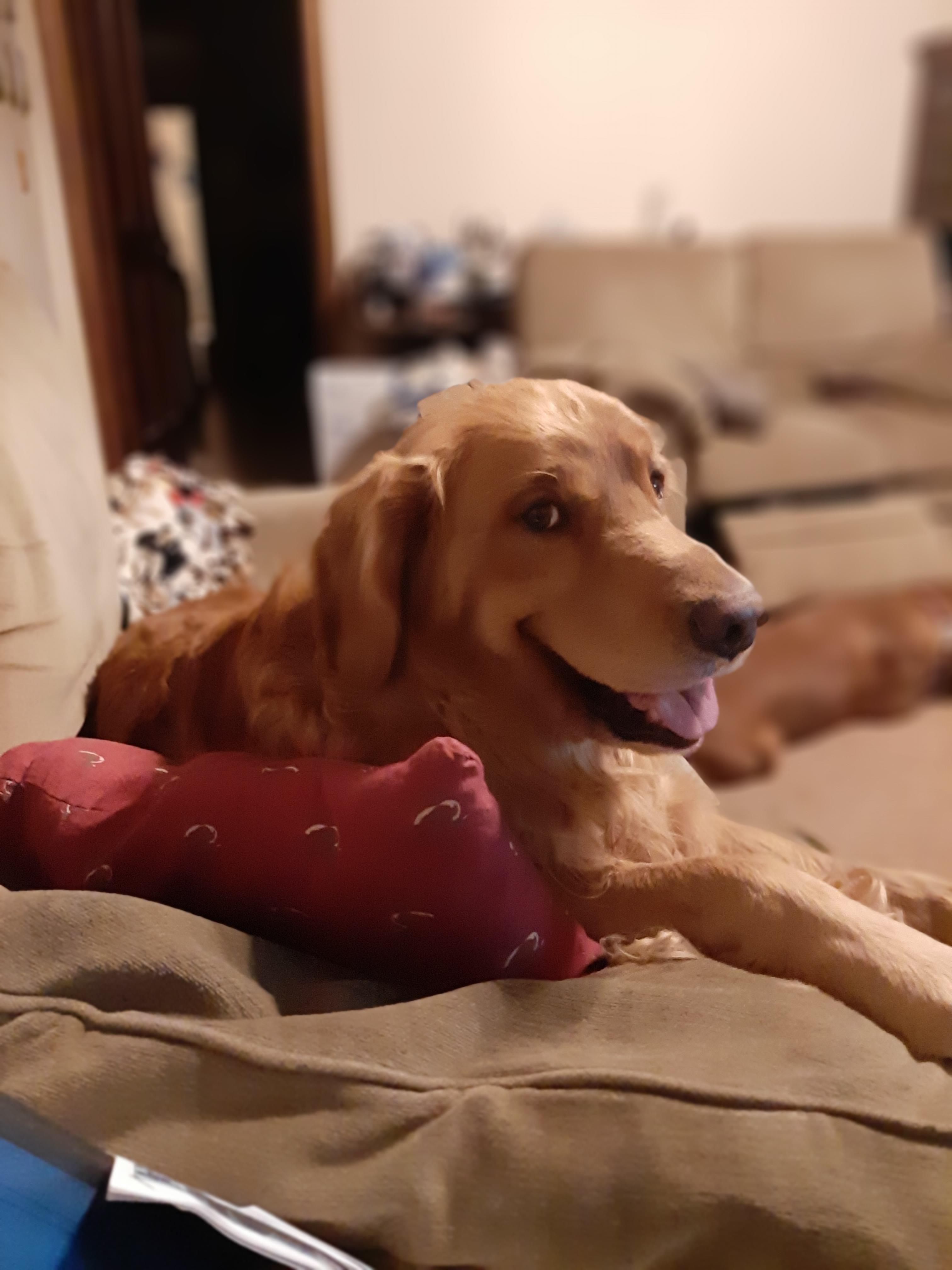 Bailey is American Golden Retriever with a beautiful reddish golden coat. He loves to cuddle especially in bed and enjoys walk, dock diving, barn hunt, and is a member of Dog Scouts of America.