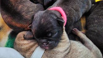 Our oldest son fell in love with pugs watching a YouTuber who always had pugs with him while he played video games. Eventually we all fell in love with them but had to wait for over a year before we got them due to the long waitlists we were on. We decided to breed because we wanted to share the love of pugs with everyone else!