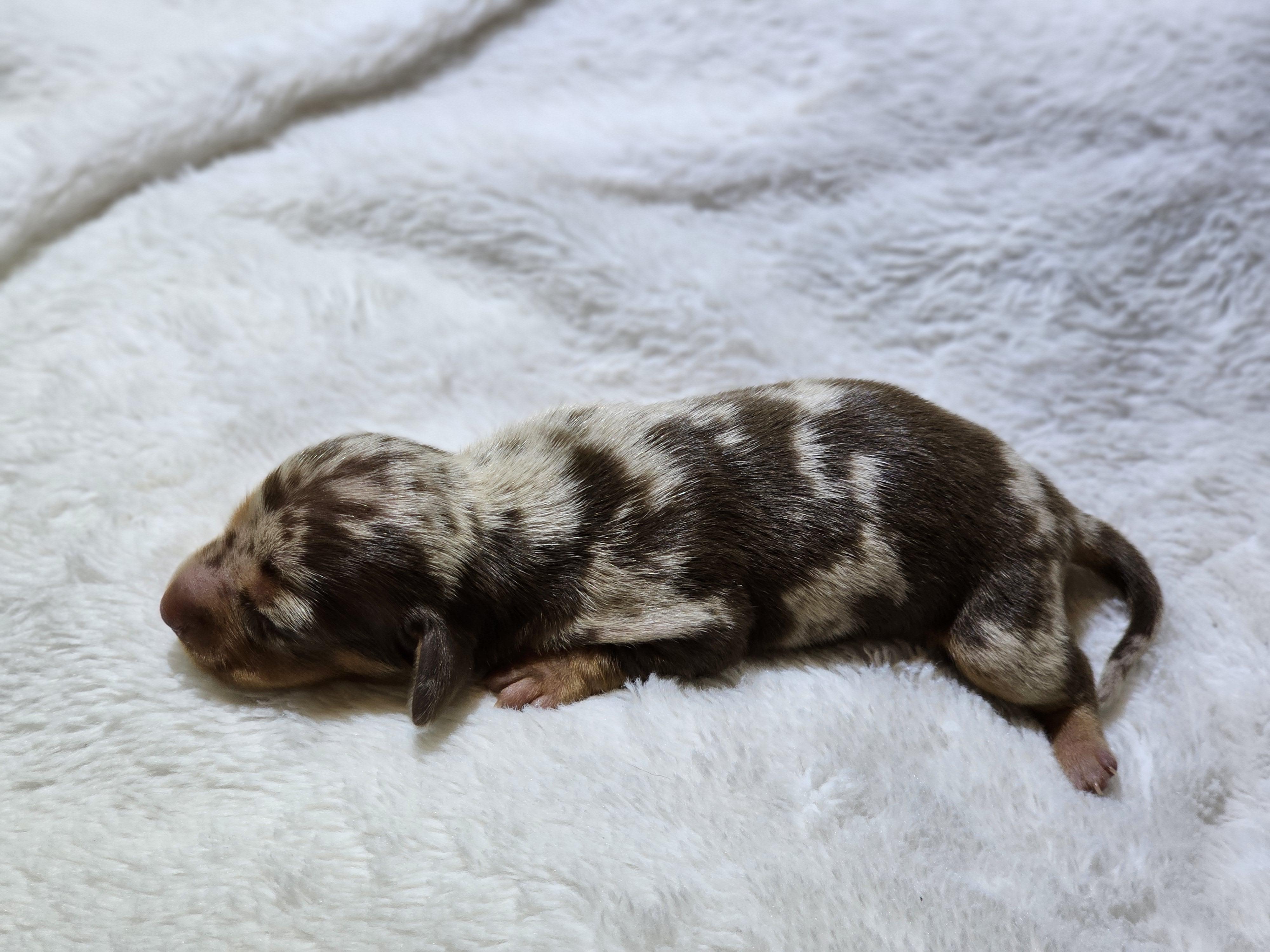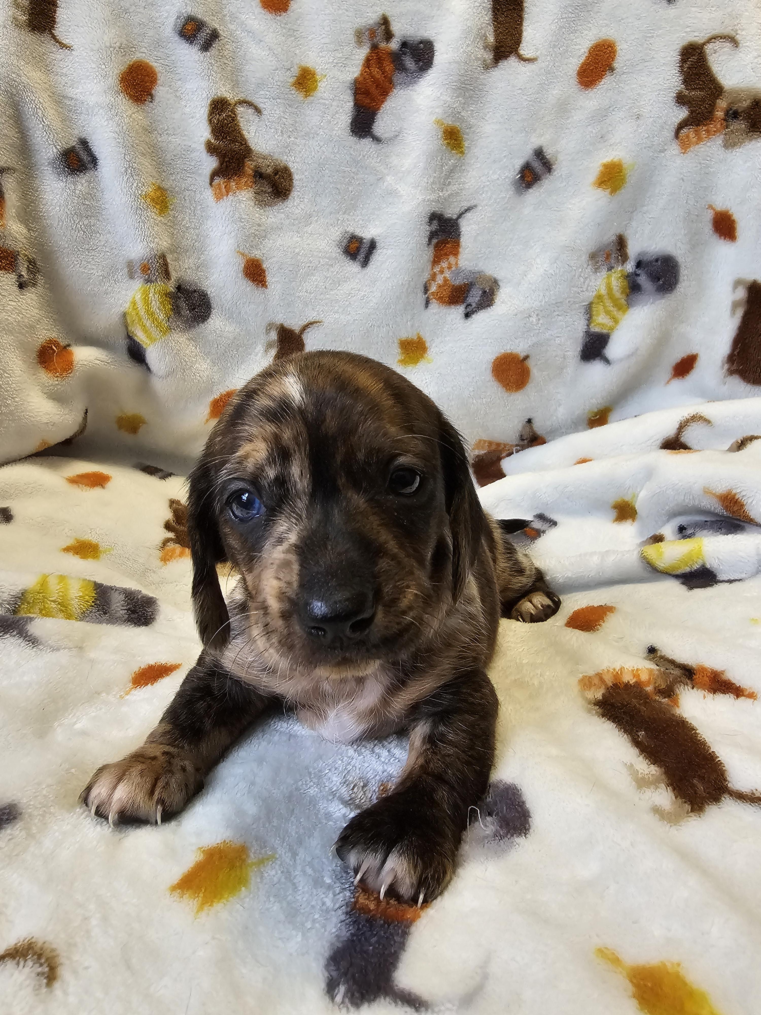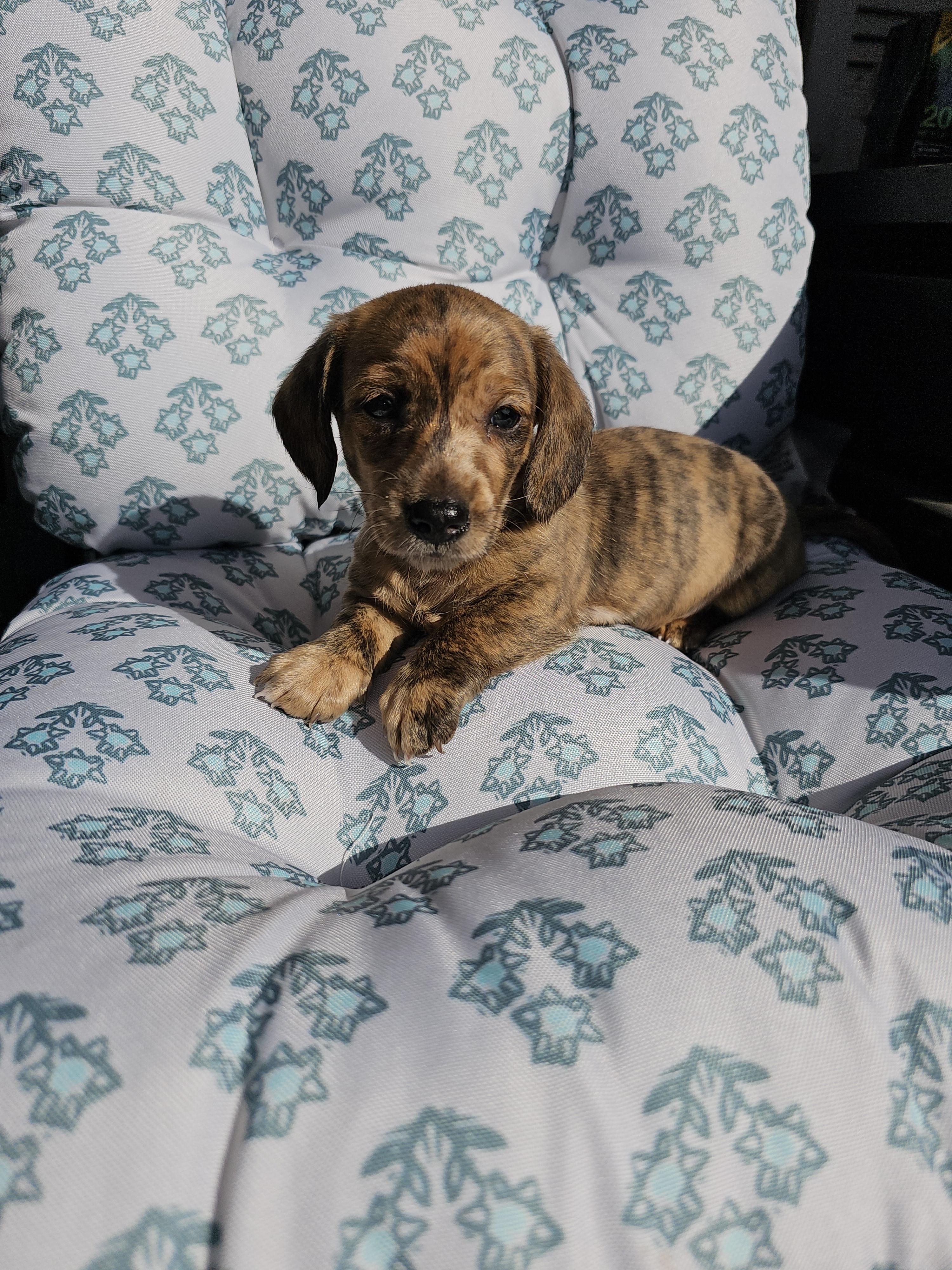 Daisy is a female Dachshund. Carefully selected as a great representative of her breed, Amanda decided to make her part of their program. Amanda has passed Good Dog’s screening process, which involved a review of their breeding practices, environment, and the mental and physical health of their dogs.