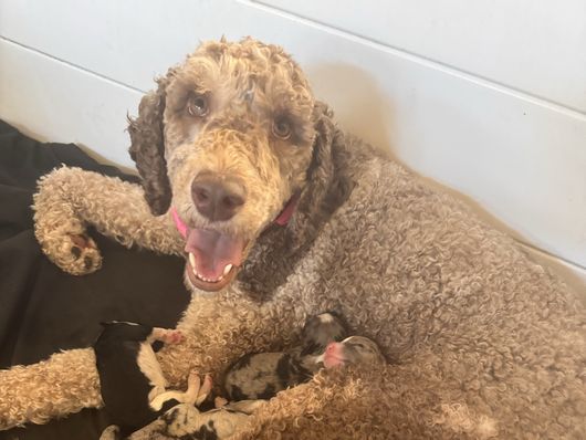 Koko is a female Bernedoodle about 4 years old. Carefully selected as a great representative of her breed, Tiffany decided to make her part of their program. Tiffany has passed Good Dog’s screening process, which involved a review of their breeding practices, environment, and the mental and physical health of their dogs.
