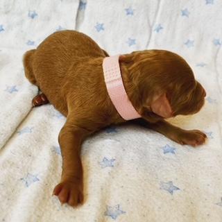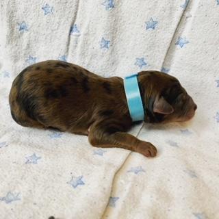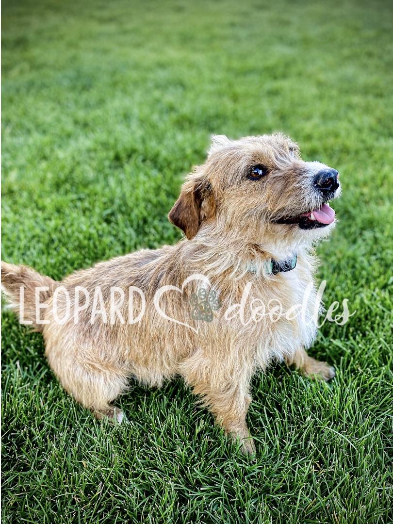 Maya Laran is a Yellow Leopard F1 Leoparddoodle. She has a super happy temperament, loves her people and visitors. She is convinced she was a kangaroo in her past life as she has hops like you wouldn't believe! Maya is currently pregnant with her first litter and is enjoying the extra belly rubs and attention.