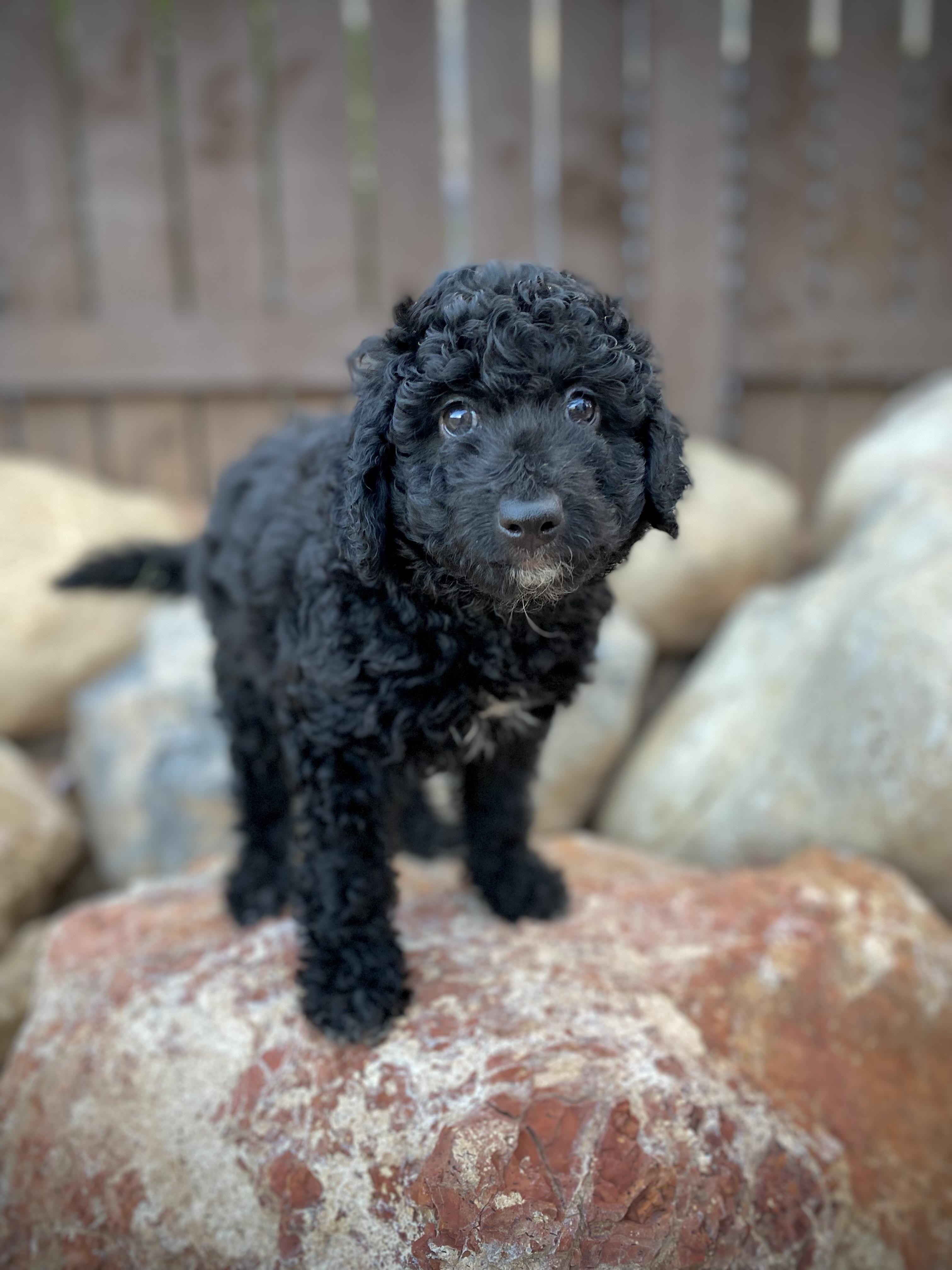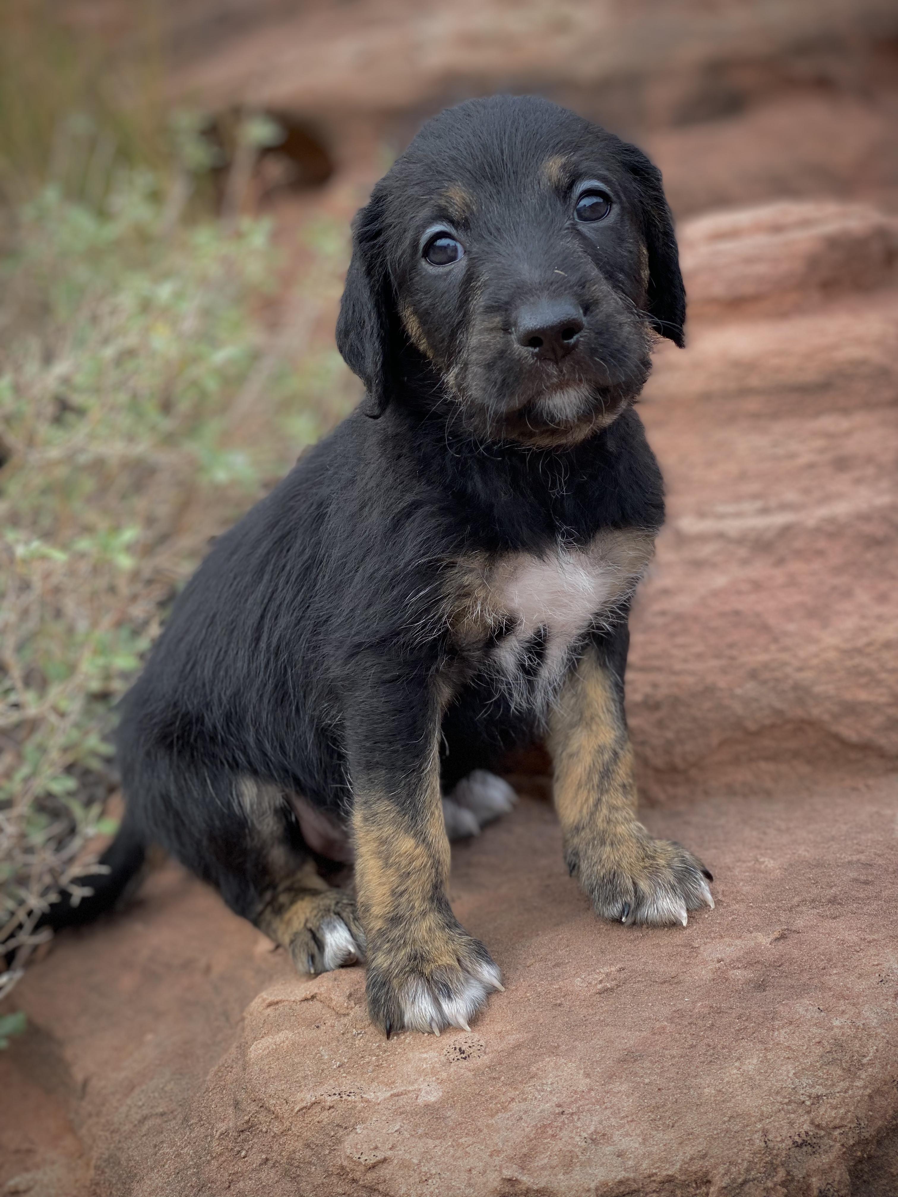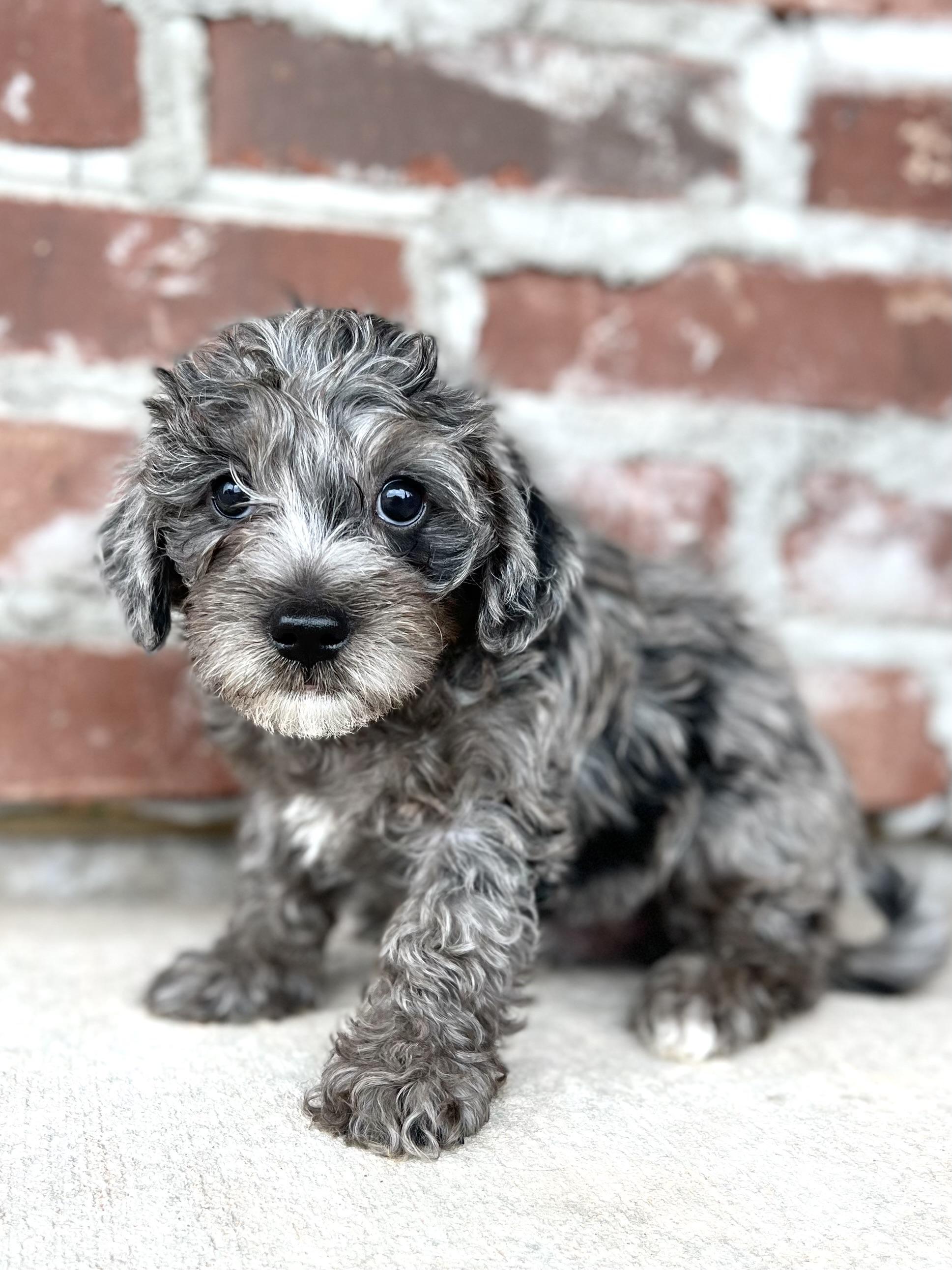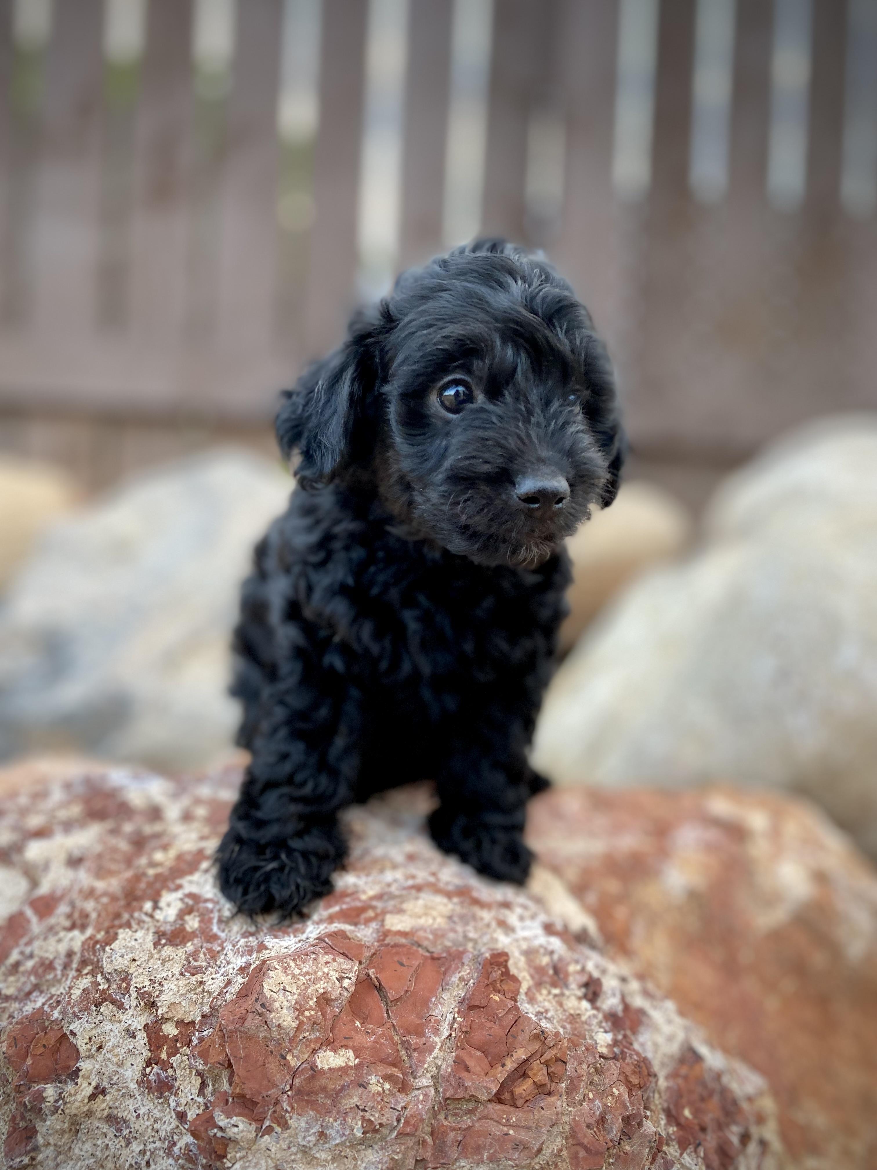 Aussiedoodle puppies include black phantom, black and white, black tri-color, and red phantom. Colors will vary depending on the parent dogs.