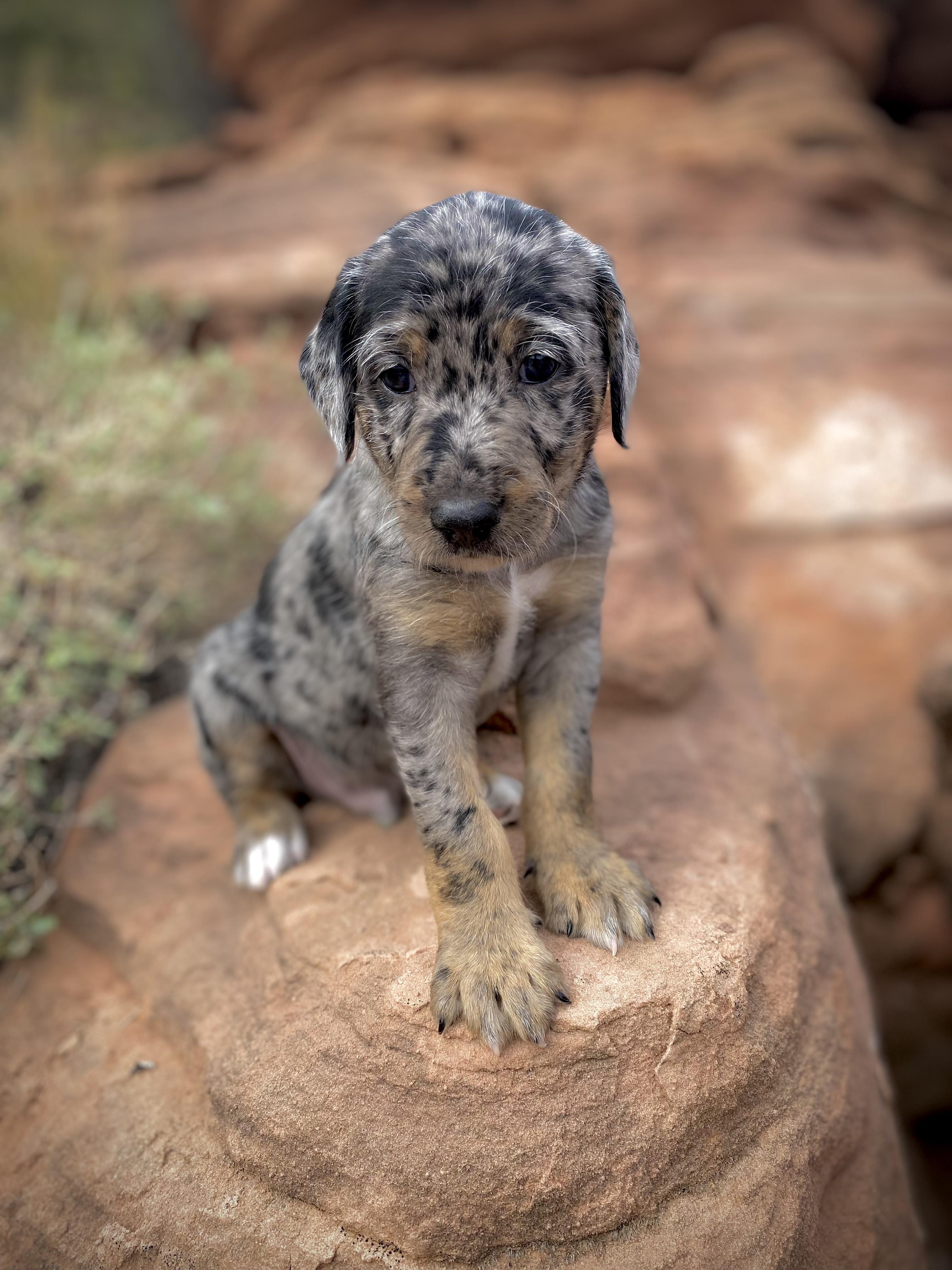 Marasi is a female Catahoula Leopard Dog. Carefully selected as a great representative of her breed, Denise decided to make her part of their program. Denise has passed Good Dog’s screening process, which involved a review of their breeding practices, environment, and the mental and physical health of their dogs.
