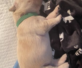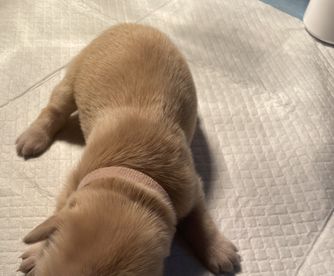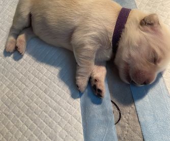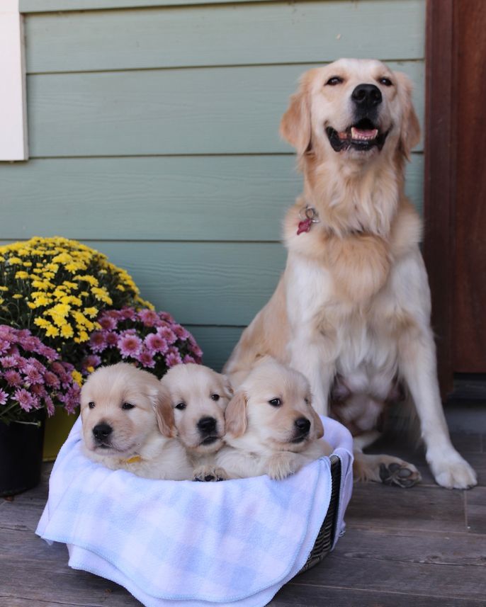 Three and a half years ago I got my female named Charlie and I knew that I wanted to breed her! A lot of careful thought and consideration went into Charlie's first litter including numerous health screenings and DNA testing. Over a year was spent planning out her first litter of puppies and picking the absolute perfect male counterpart. The dad's name is "Bode" and is a beautiful Golden Retriever who has won several conformation titles. Charlie has won trick dog titles, rally competitions, and has competed in nose work trials!