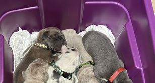 Quinn is a female Great Dane. Carefully selected as a great representative of her breed, Kelsey decided to make her part of their program. Kelsey has passed Good Dog’s screening process, which involved a review of their breeding practices, environment, and the mental and physical health of their dogs.