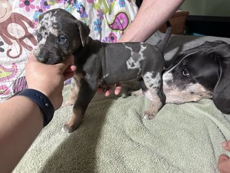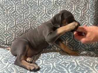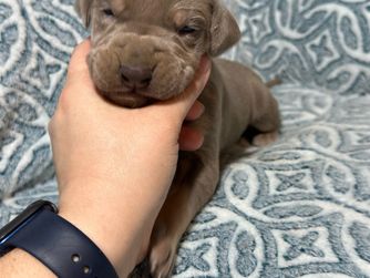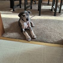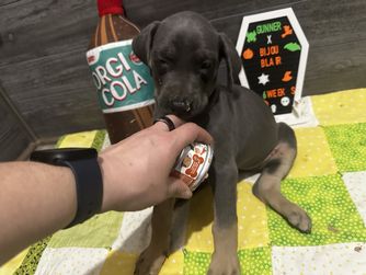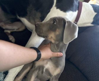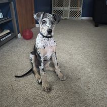 We had a very good experience with A Spot Of Blue Great Danes. Having never done this before, Eleesha and her family made the process super easy. We knew right away their experience and knowledge were legit, and put us at ease with choosing them. Chandi (Indy) has doubled in size and is really starting to settle in to our family.