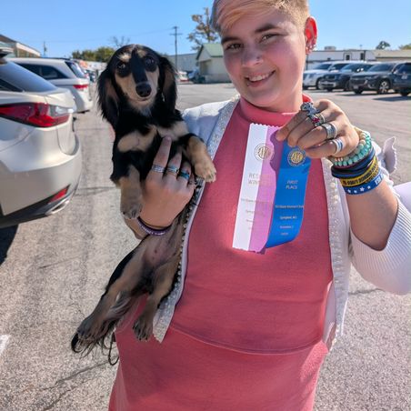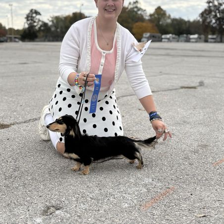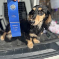 I had the best experience with Rhiannon! From start to finish, she made the entire process so easy and stress-free. The payment process was seamless, and she was incredibly responsive to all of my questions, even after I brought my new puppy home. When Pennie (formerly Angelina) arrived, she came with everything she needed, and it was clear how well cared for she had been. Rhiannon was also so flexible and helpful throughout the whole journey. Pennie is the perfect puppy, and I couldn’t be happier with my choice to go with Walk in the Park Dachshunds. Highly recommend!