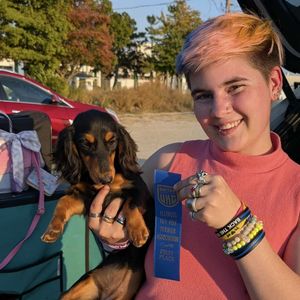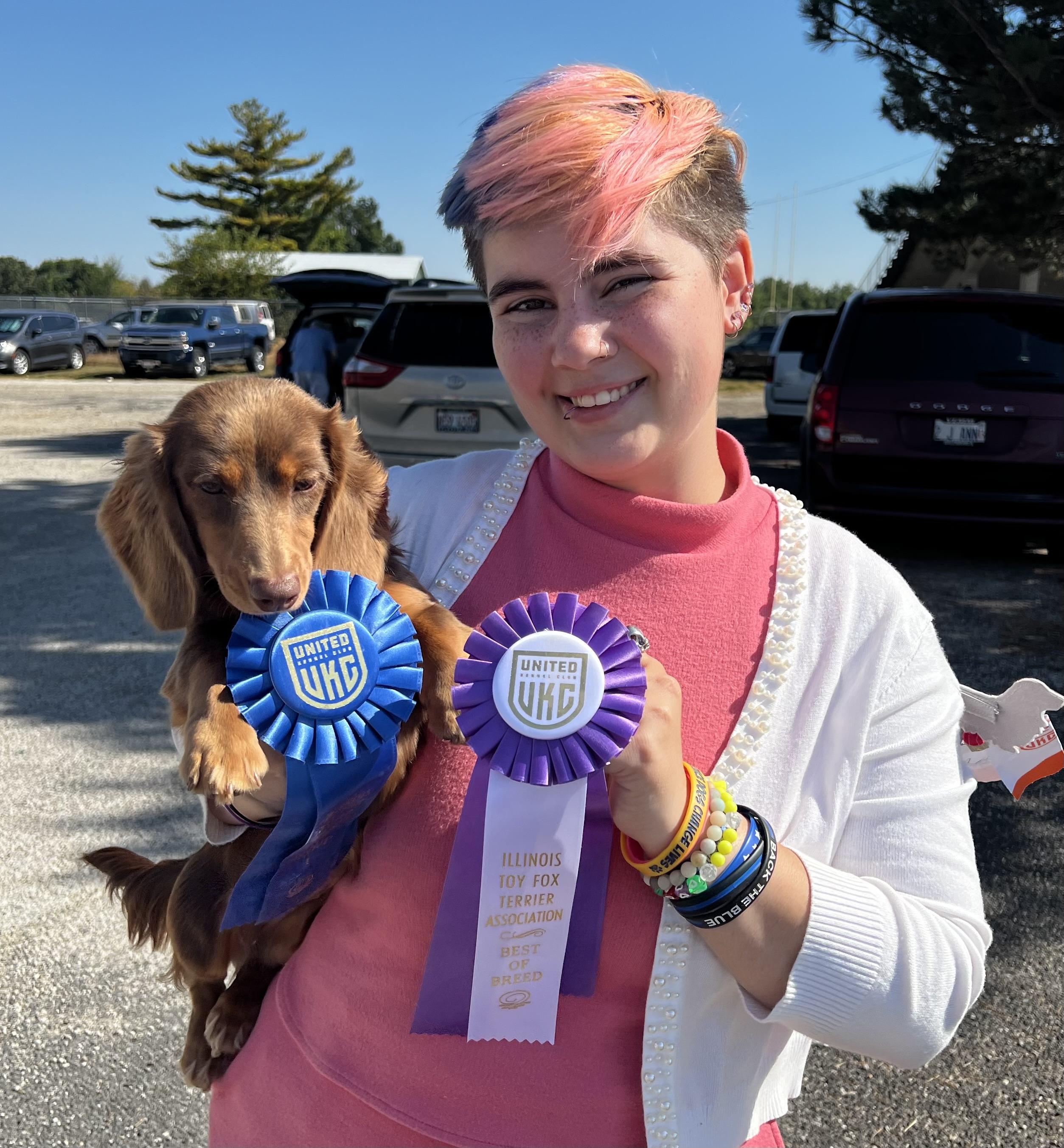 My family has always loved dogs and animals. When I was little, I went back and forth on being a dog breeder like my mom or being an artist, also like my mom. Now, I do both! Whenever I first saw a dachshund as a kid it was love at first sight, and I knew that I wanted to share their joy and light with the rest of the world, through art, and protect and preserve the breed, through breeding.