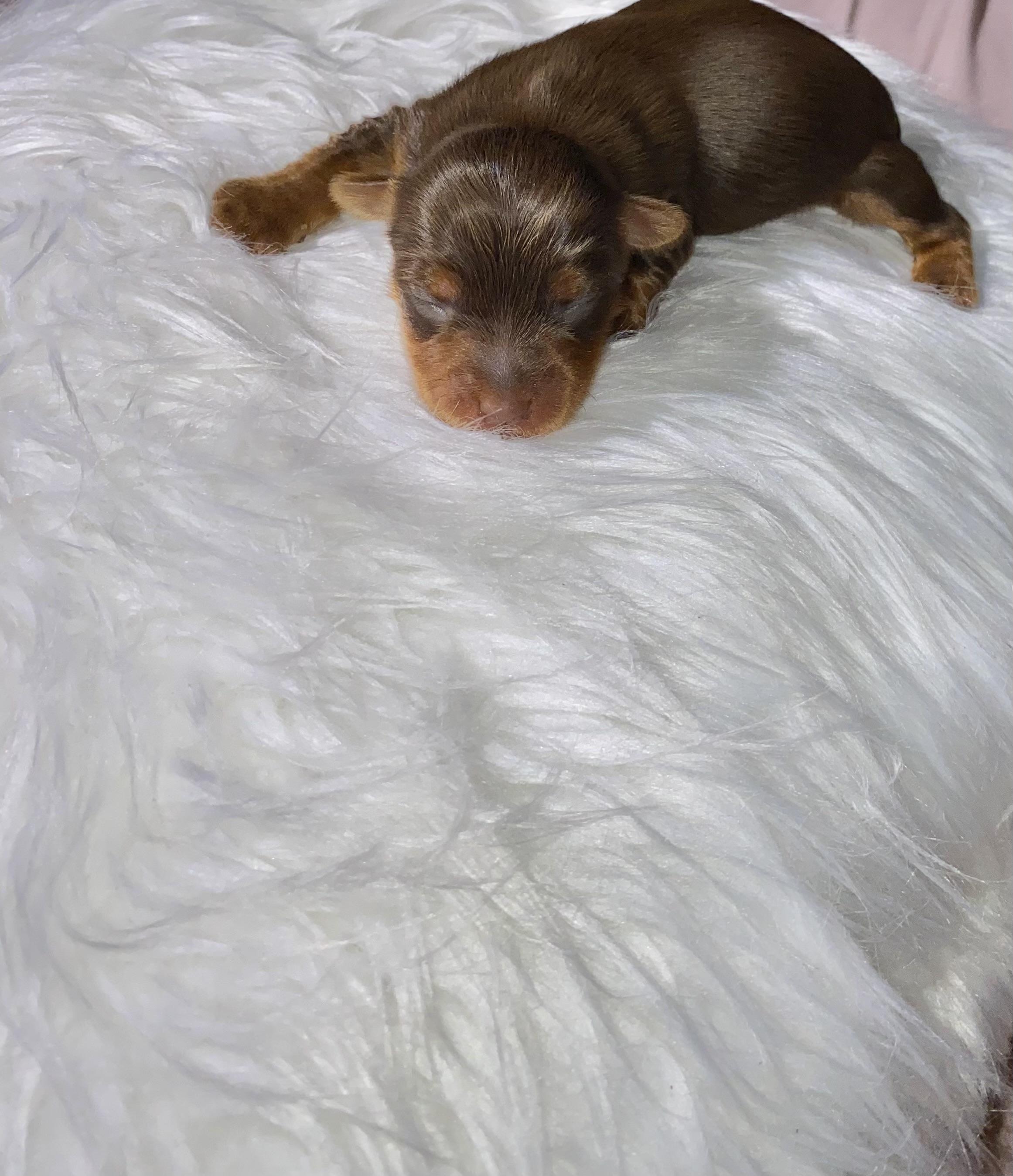 Our puppies include chocolate and tan, parti, and black and tan. Colors will vary depending on the parent dogs.