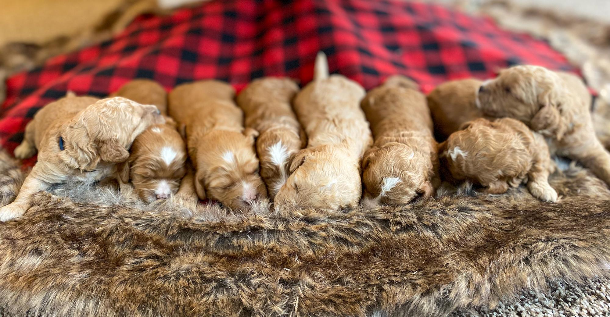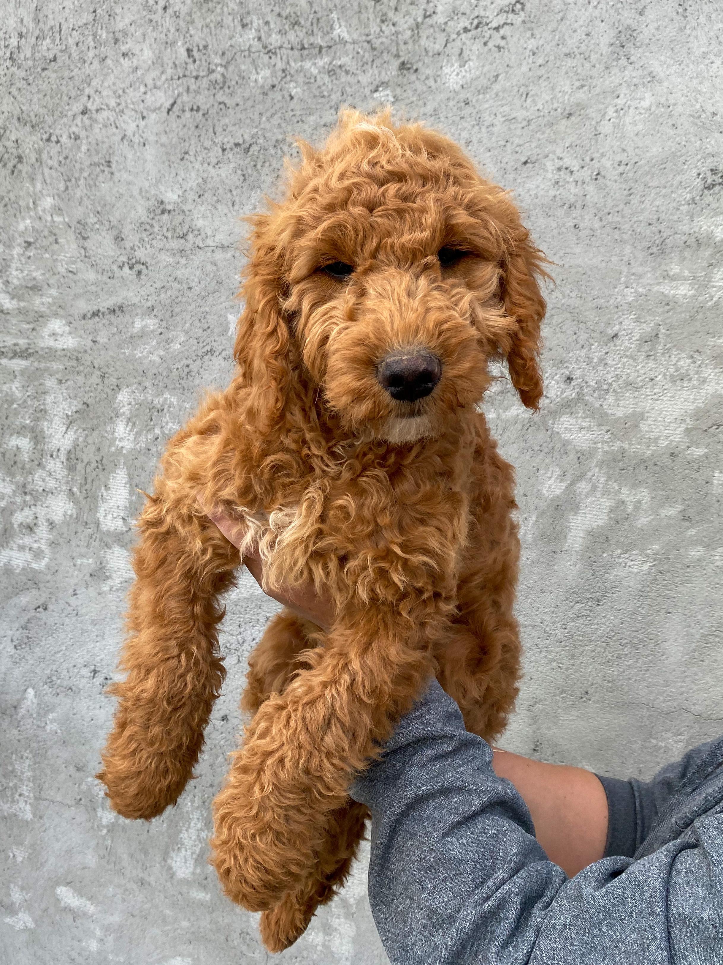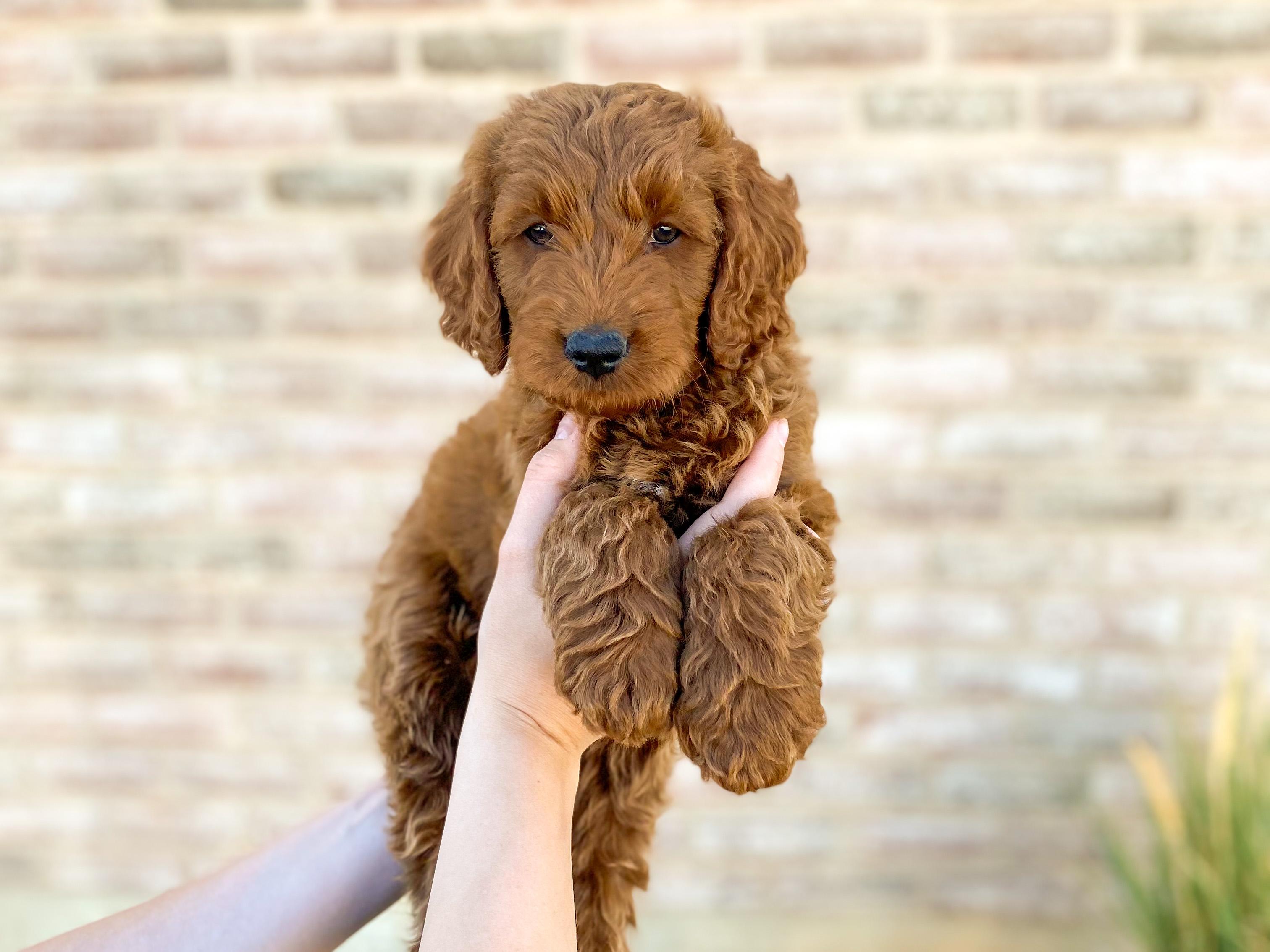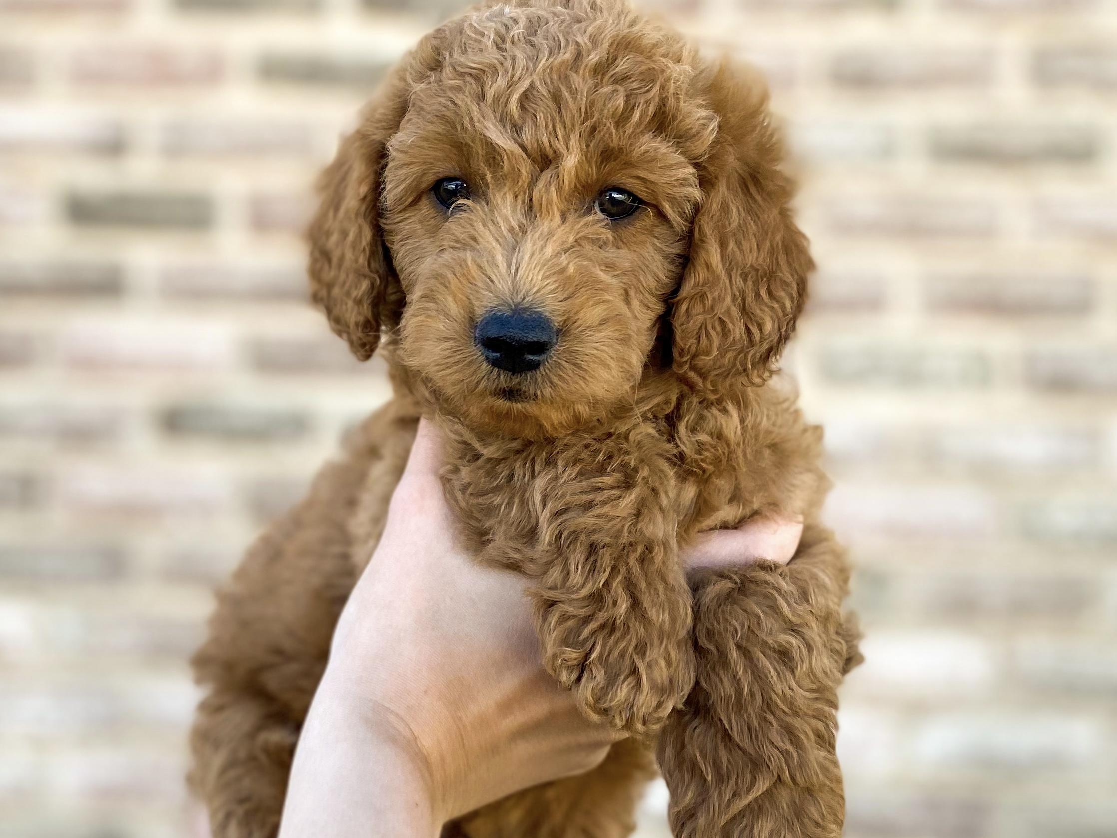 Goldendoodle puppies include apricot and red. Colors will vary depending on the parent dogs.