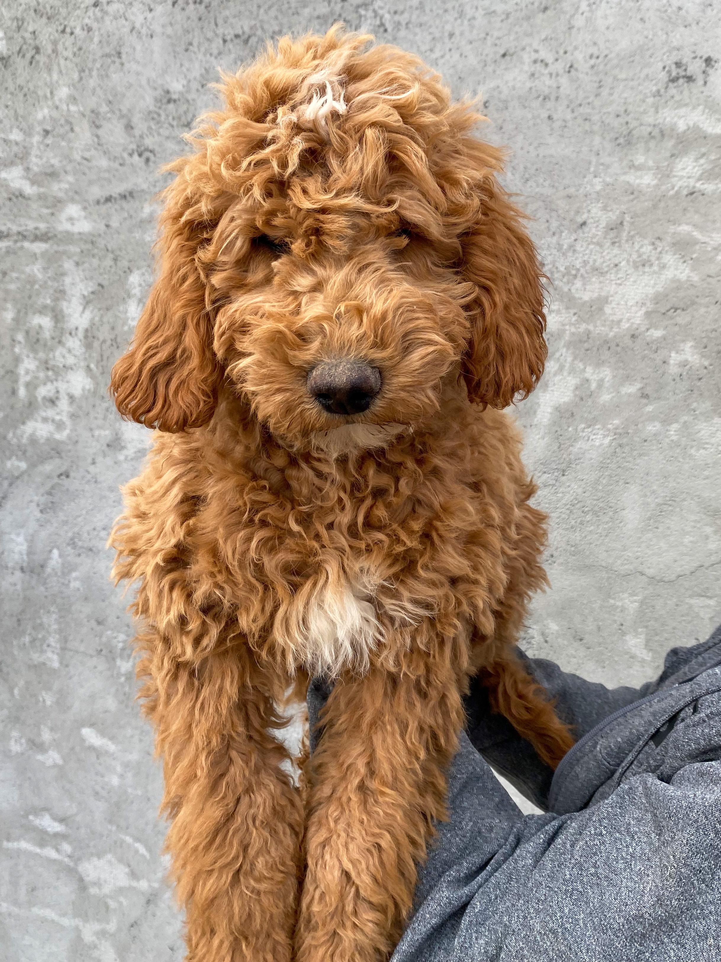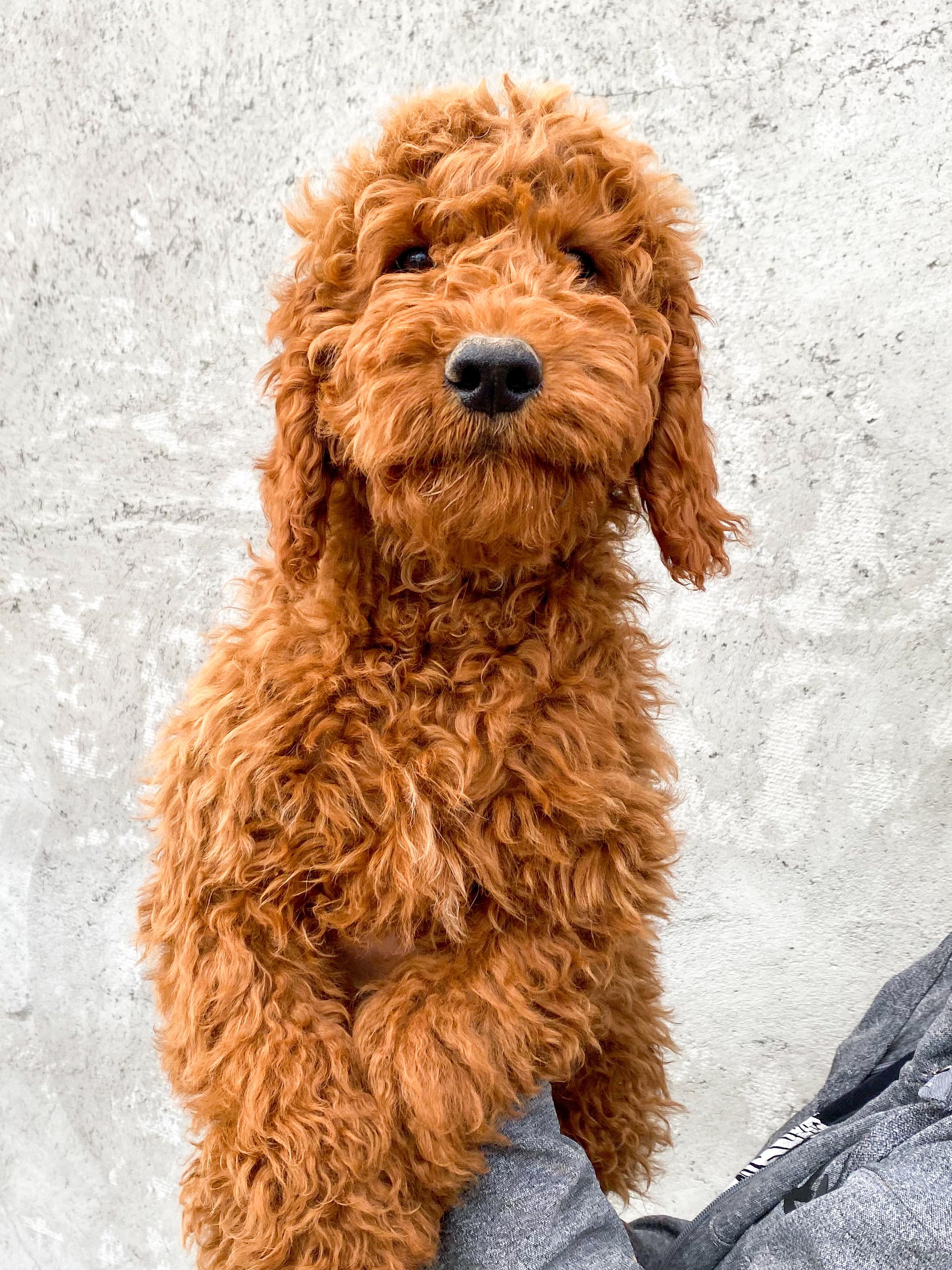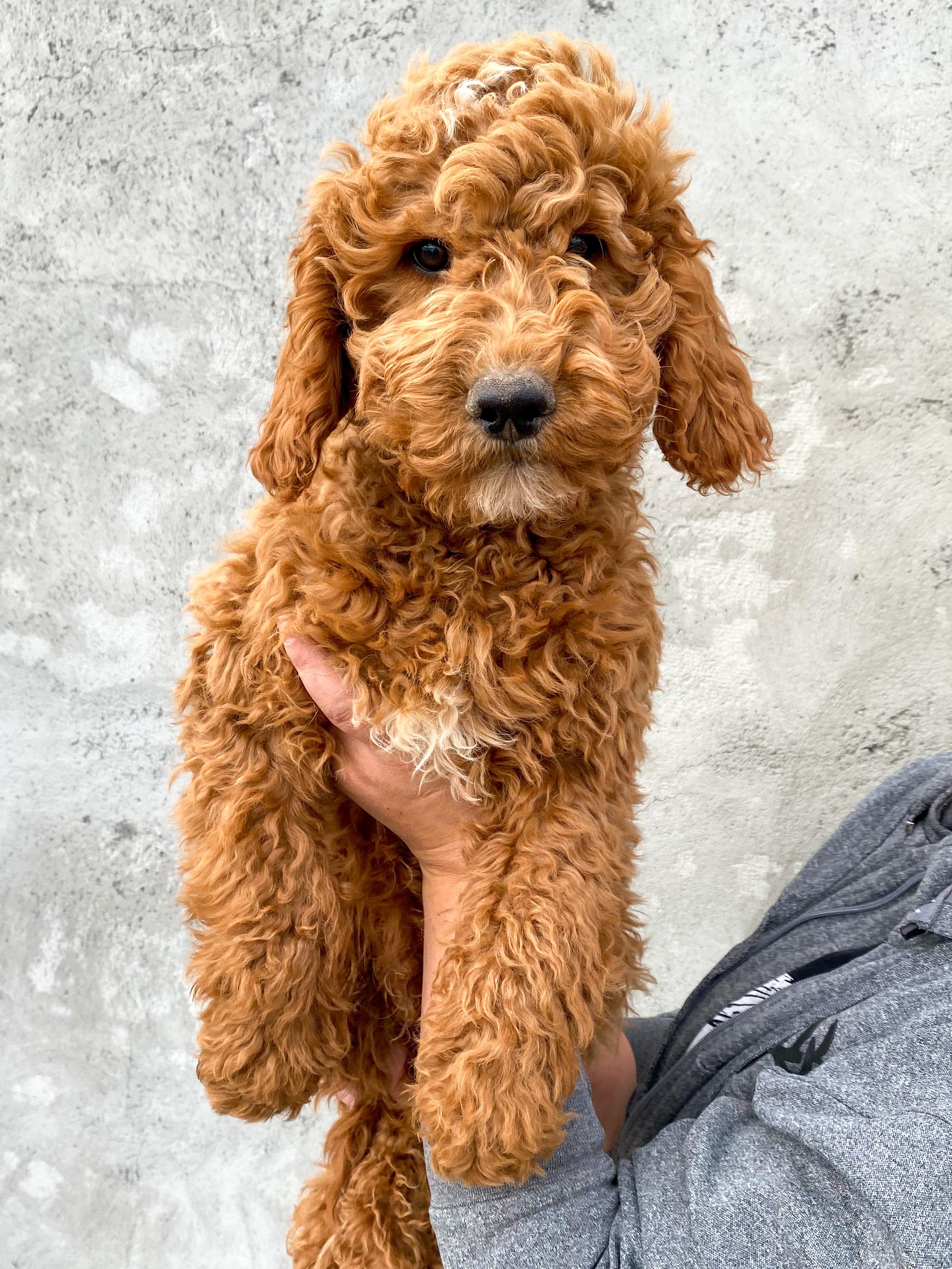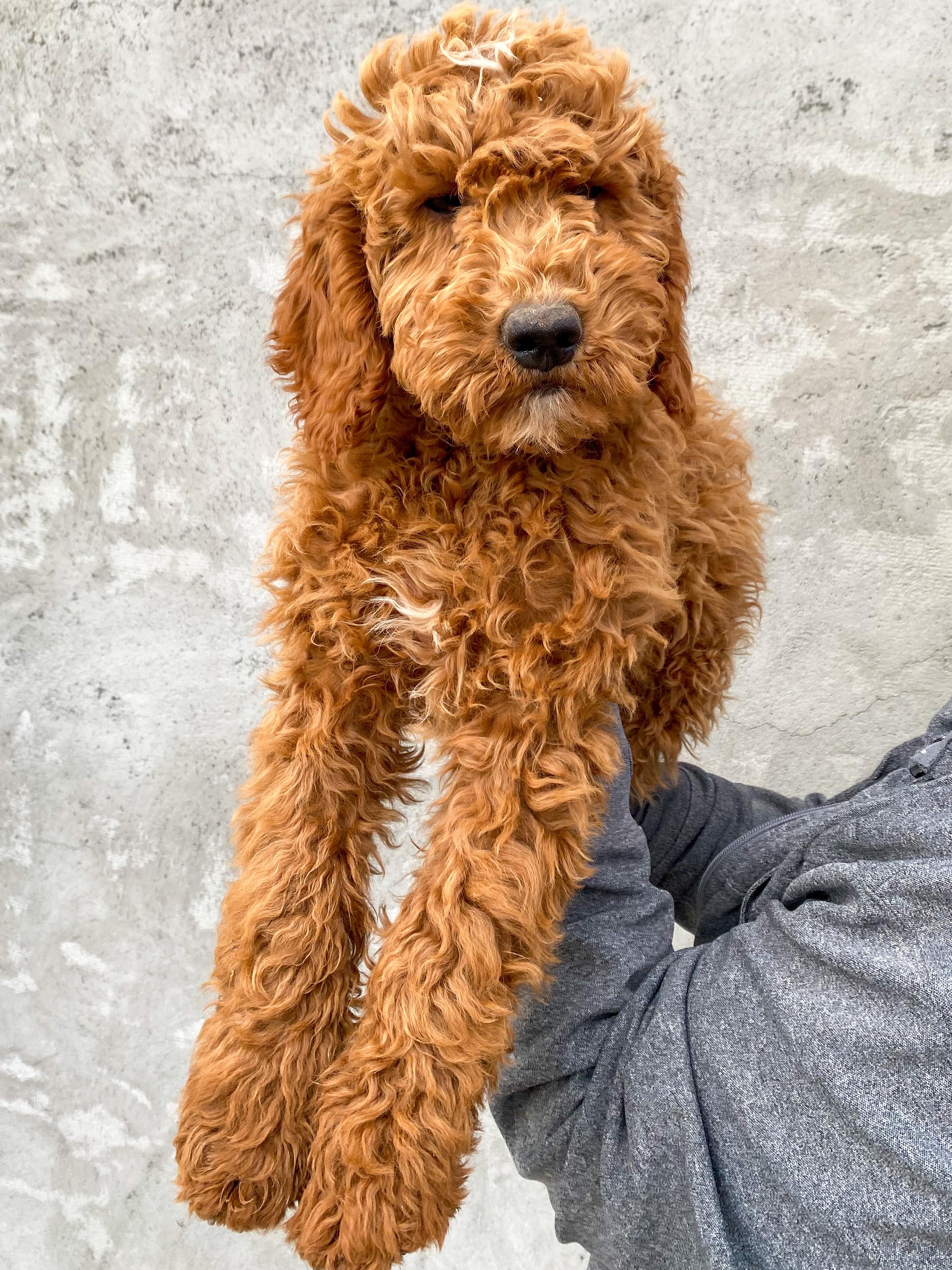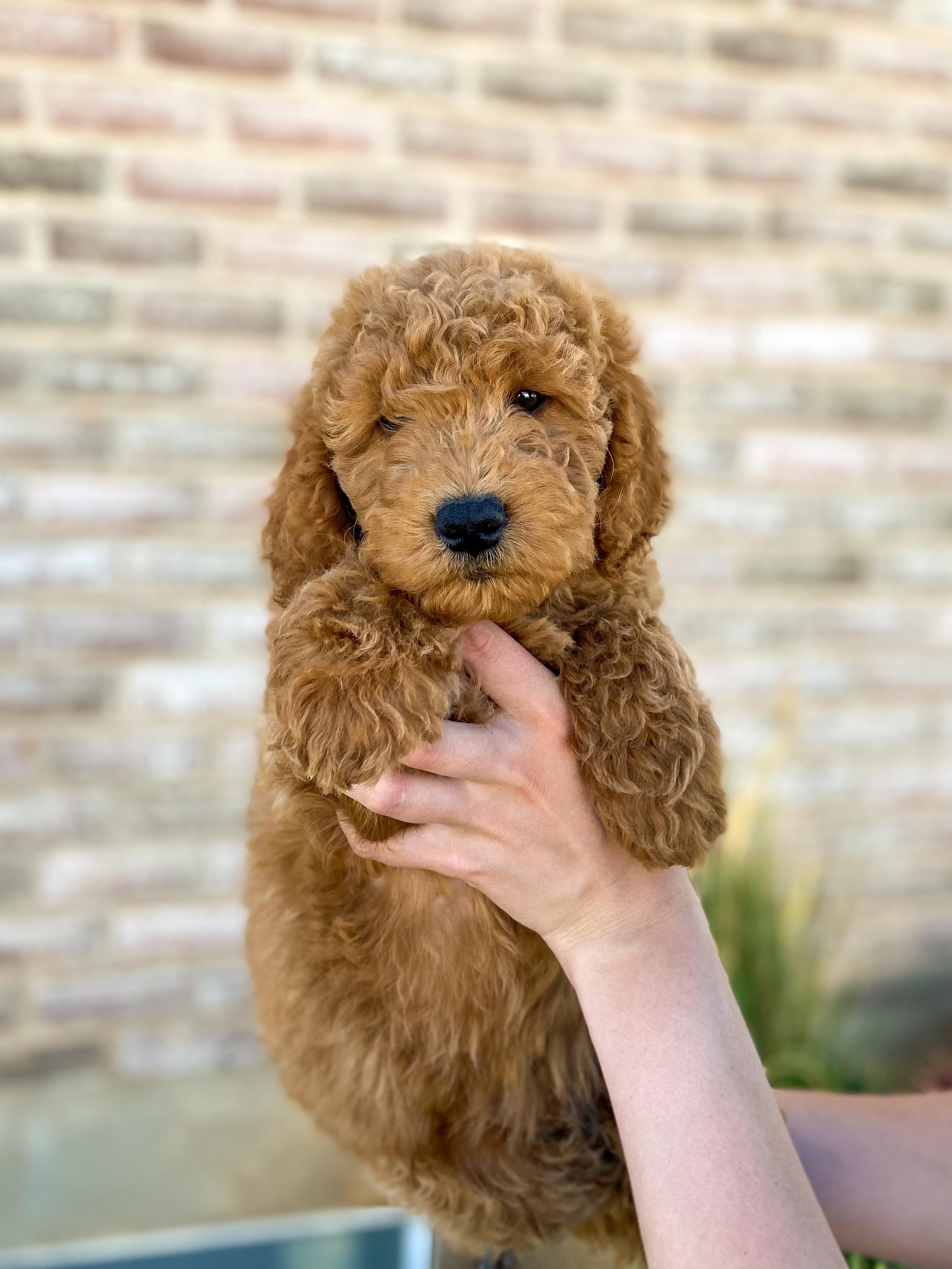 Goldendoodle puppies include apricot and red. Colors will vary depending on the parent dogs.