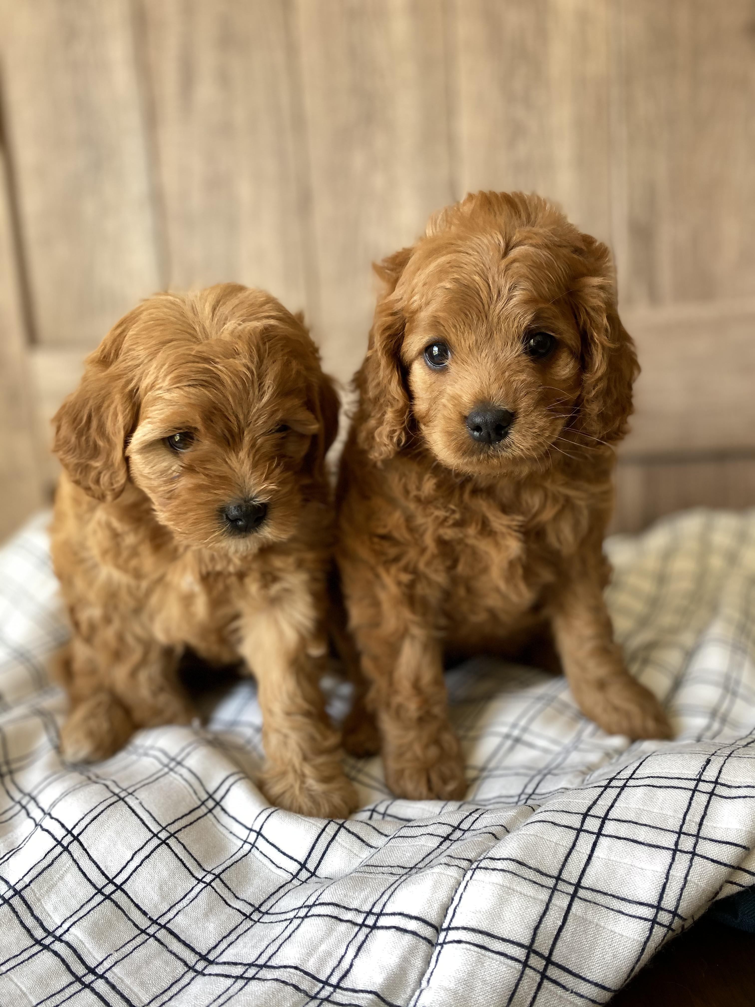 Our Cavapoo puppies are miniature size. Goldendoodle puppies include petite and miniature sizes. Sizes will vary depending on the parent dogs.
