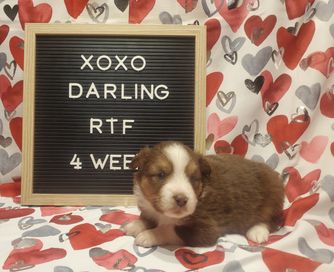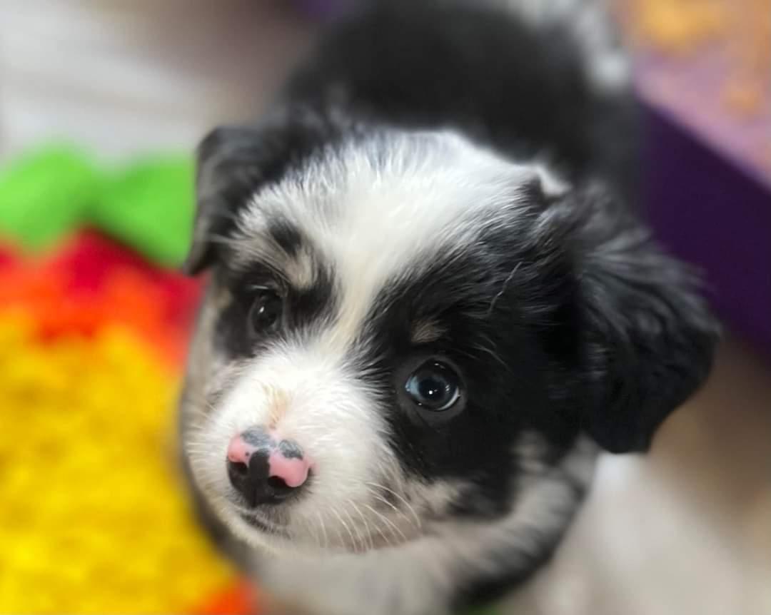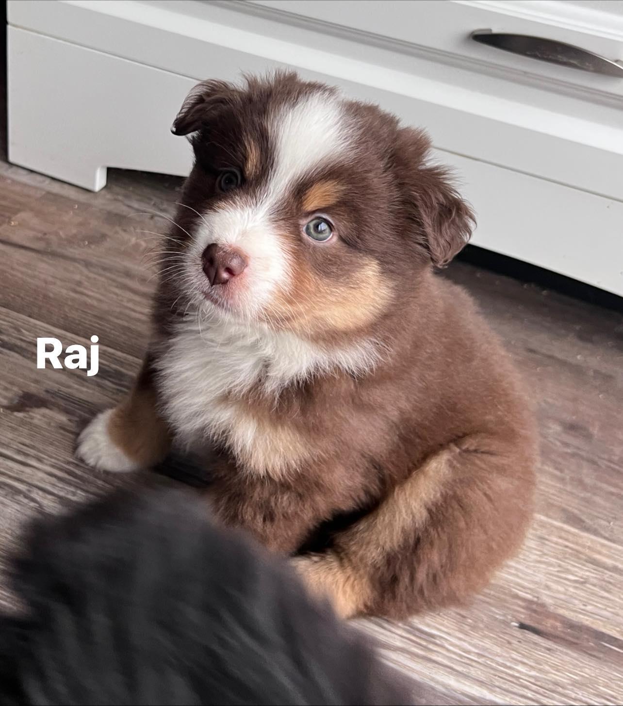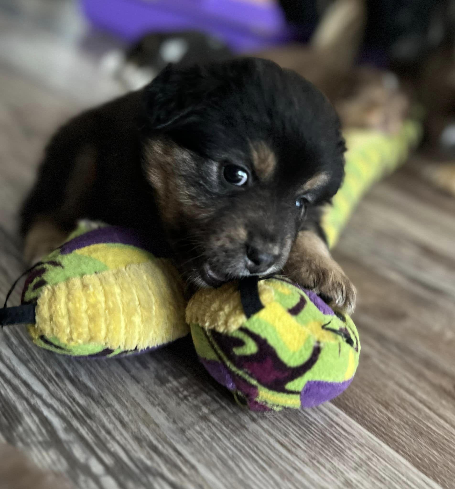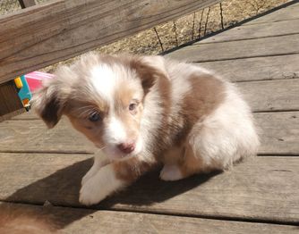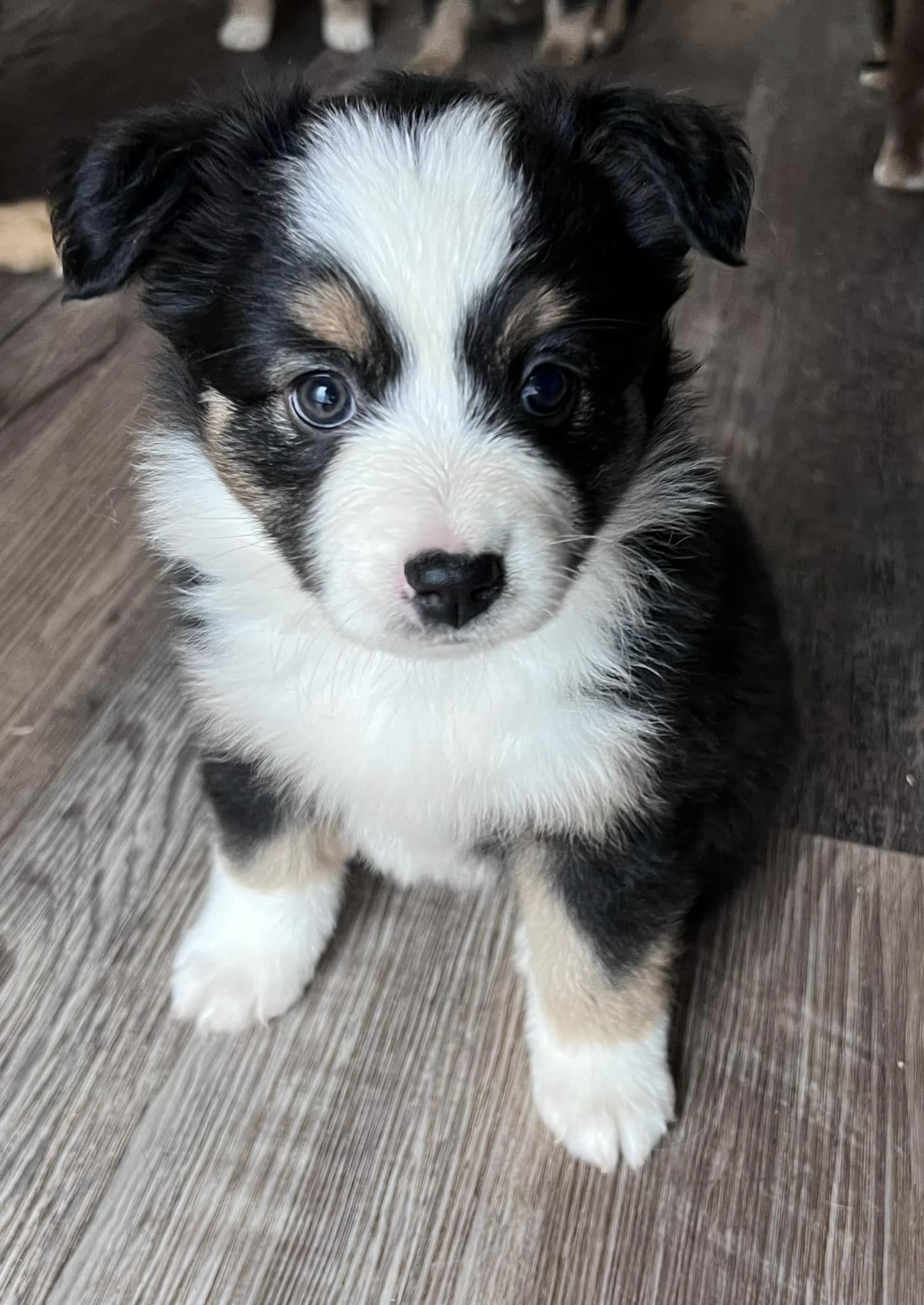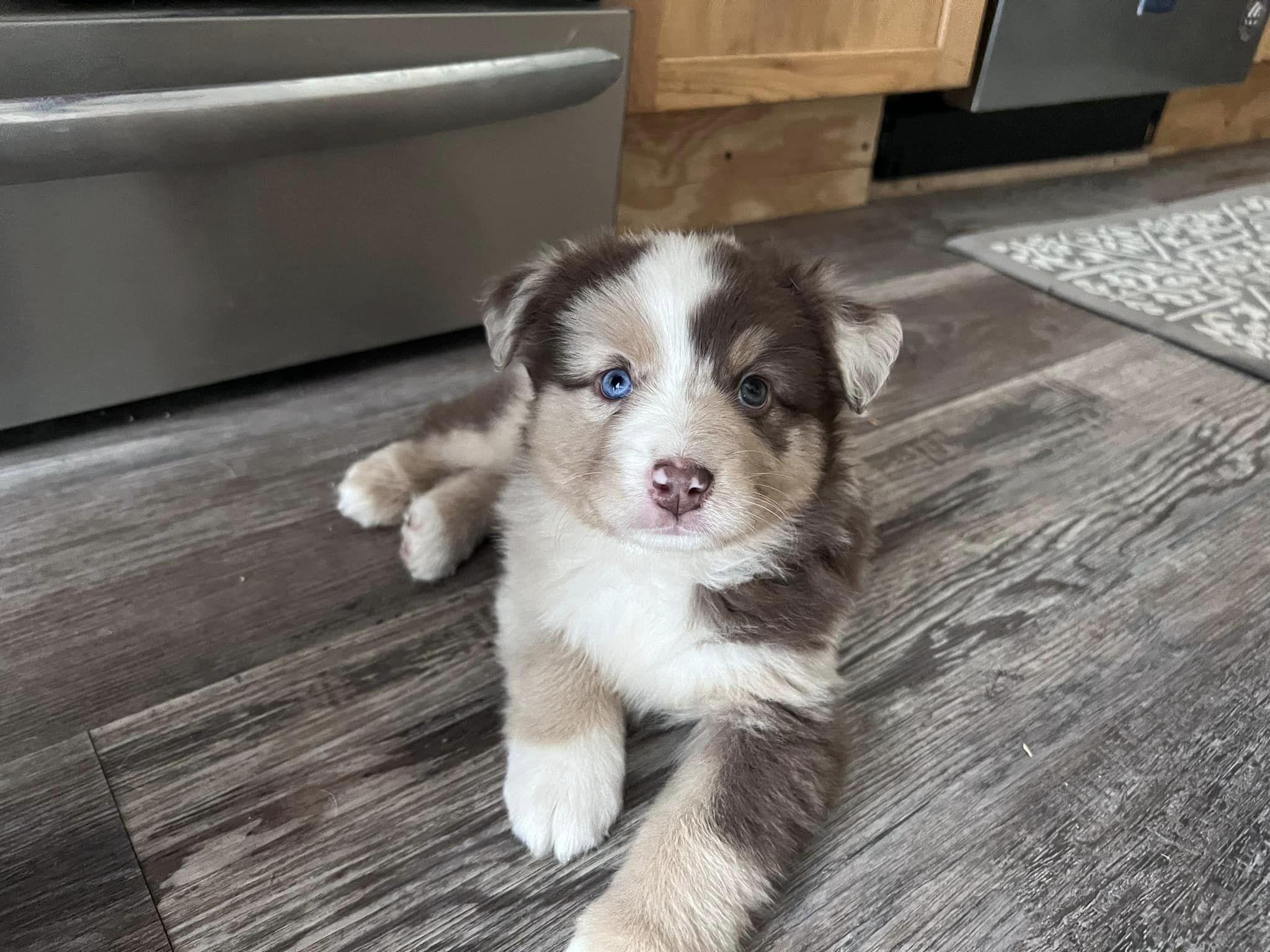 Our puppies include red & white, black & white, blue merle, black tri, red tri, red merle, red, and black. Colors will vary depending on the parent dogs.