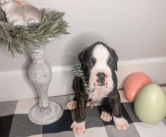 I'm Emily S., the breeder behind A&B Euro Boxers, LLC located in Missouri. We work hard to produce healthy, well-rounded Boxer puppies that will make others as happy as our dogs have made us! We raise our litters in our home to help set the foundation for happy and confident puppies to transition well into their forever homes.