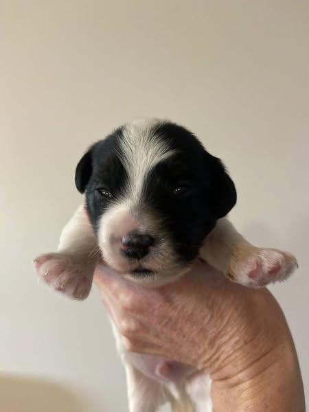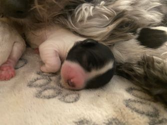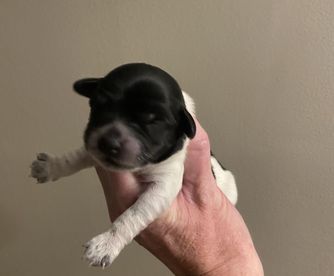 Our puppies are black and white. Colors will vary depending on the parent dogs.