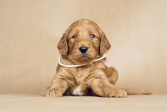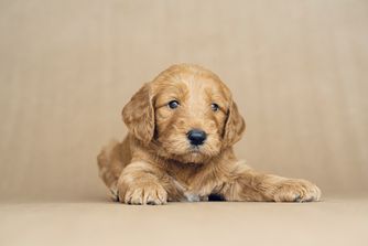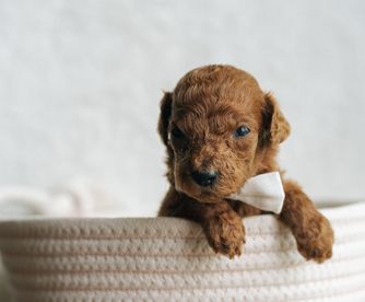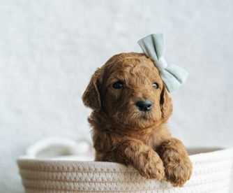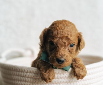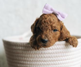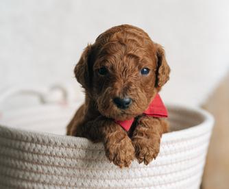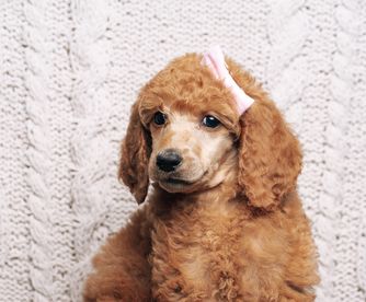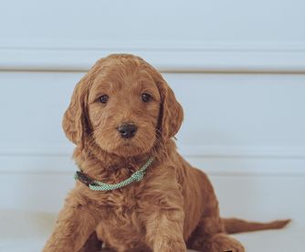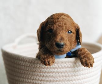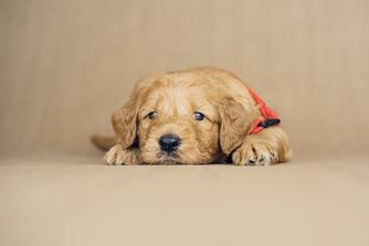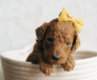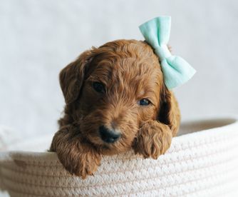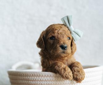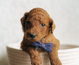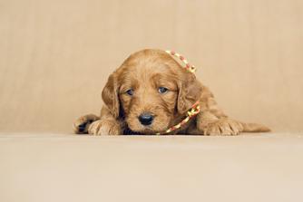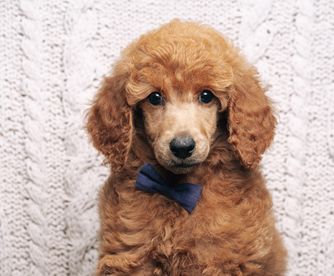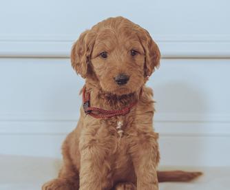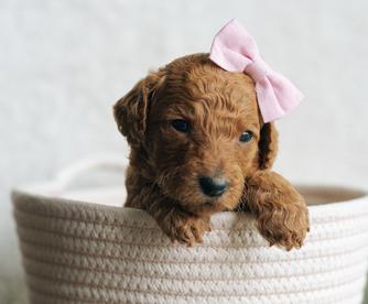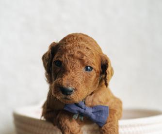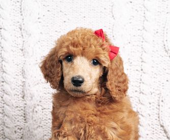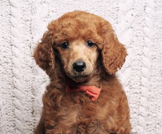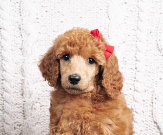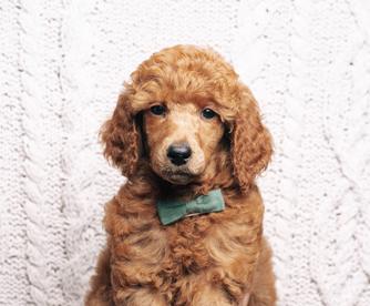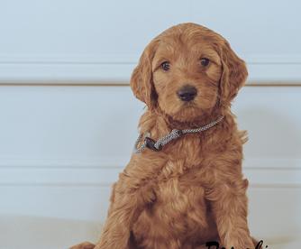 Goldendoodle puppies are red. Poodle puppies are red. Colors will vary depending on the parent dogs.