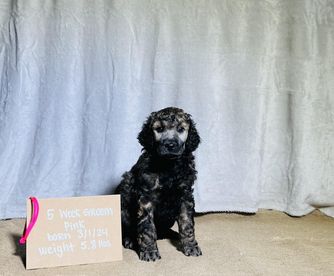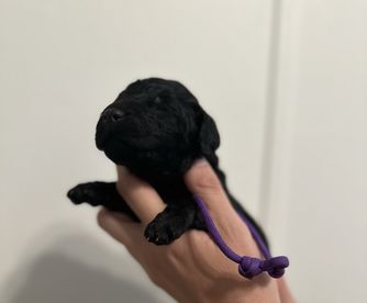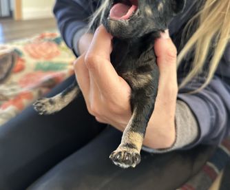 “Puppies are AKC registered, raised on ENS and ESI curriculums, clicker conditioned, and temperament tested. Puppies are seen by a vet to start vaccines, be dewormed, and be microchipped. ”