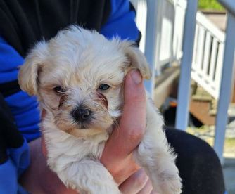 Tinker is a female Maltipoo. Carefully selected as a great representative of her breed, Karen decided to make her part of their program. Karen has passed Good Dog’s screening process, which involved a review of their breeding practices, environment, and the mental and physical health of their dogs.