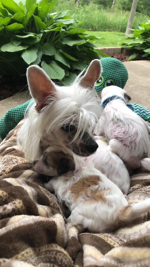 Our puppies include powderpuff and hairless coat varieties. Coat types may vary depending on the parent dogs.
